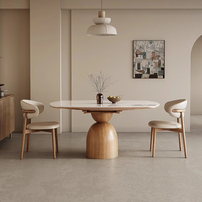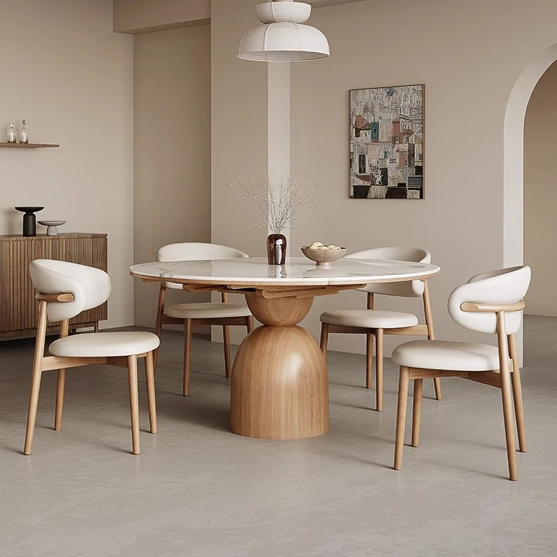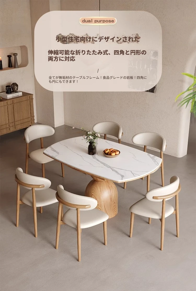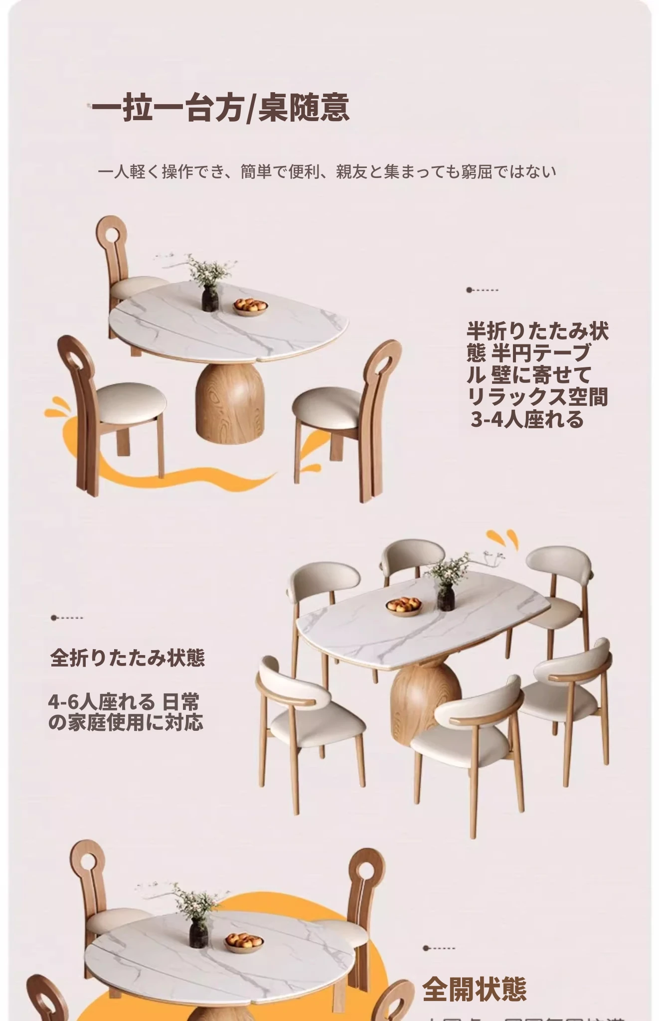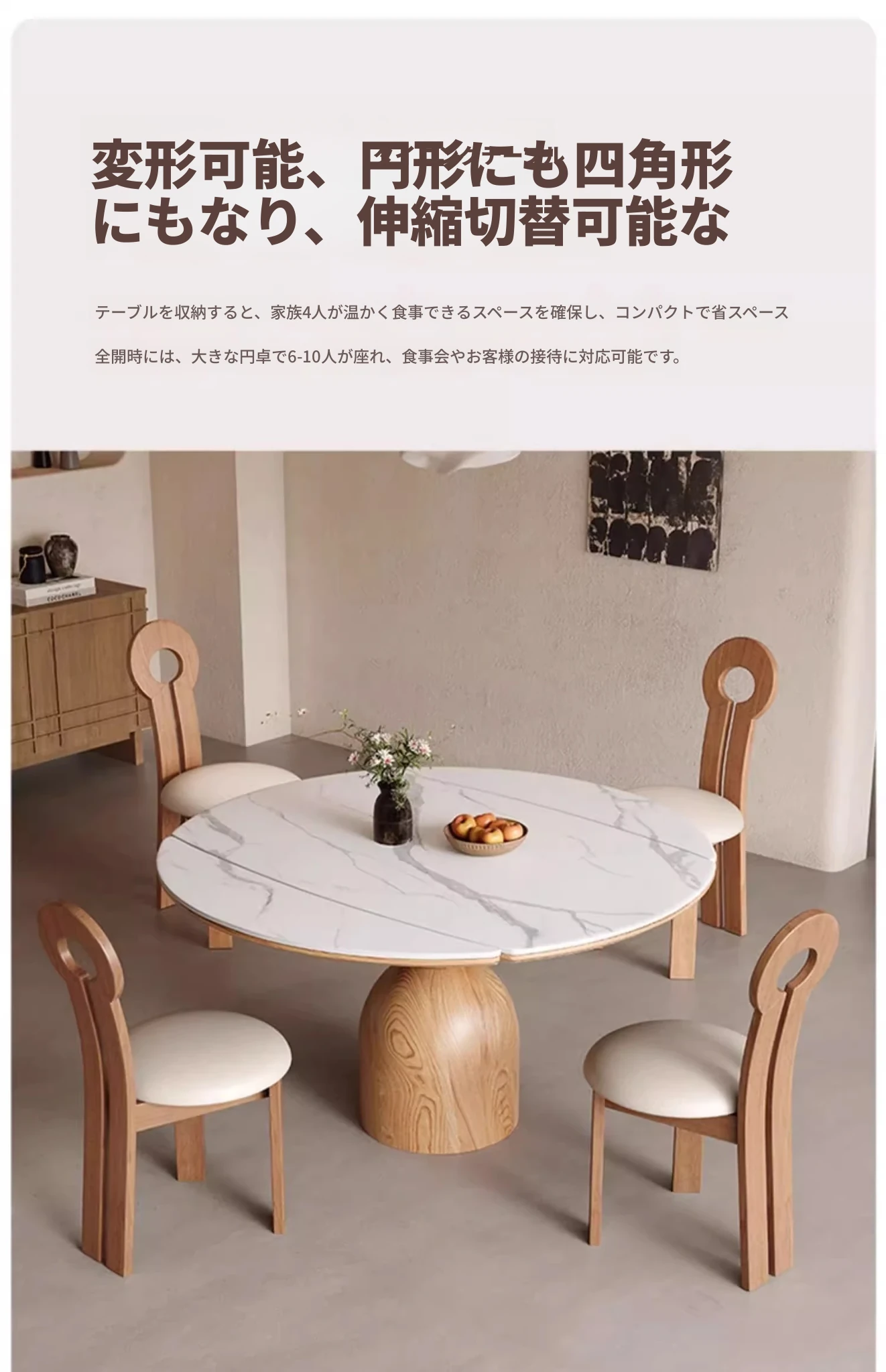 北欧スタイルの伸縮折りたたみ多機能テーブル - 丸型から四角型に変形可能!小スペースにぴったりな家庭用ダイニングテーブルセット。おしゃれで使いやすい、あなたの食卓を彩るアイテムです!