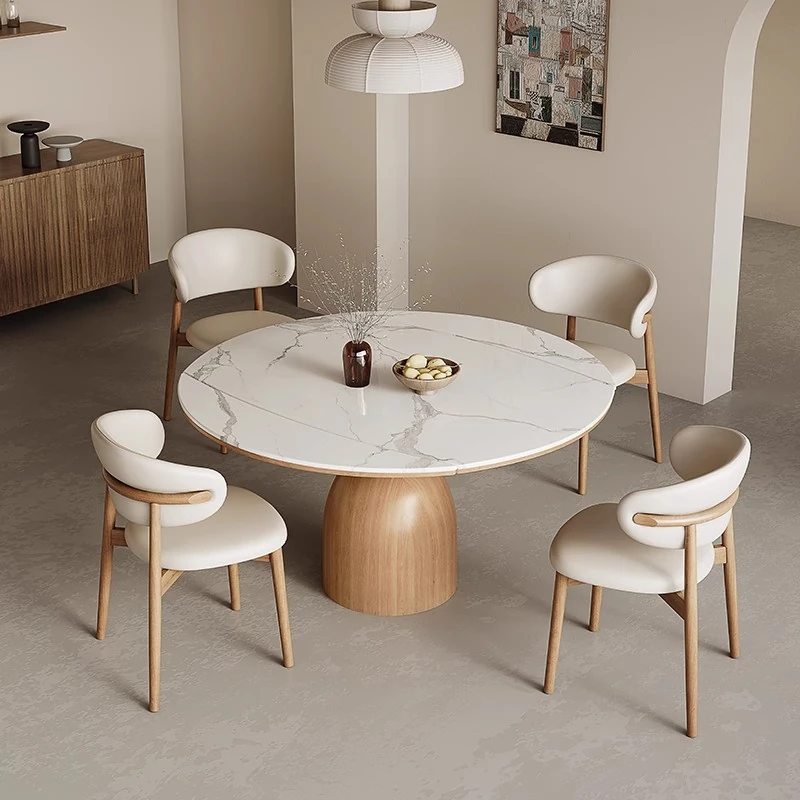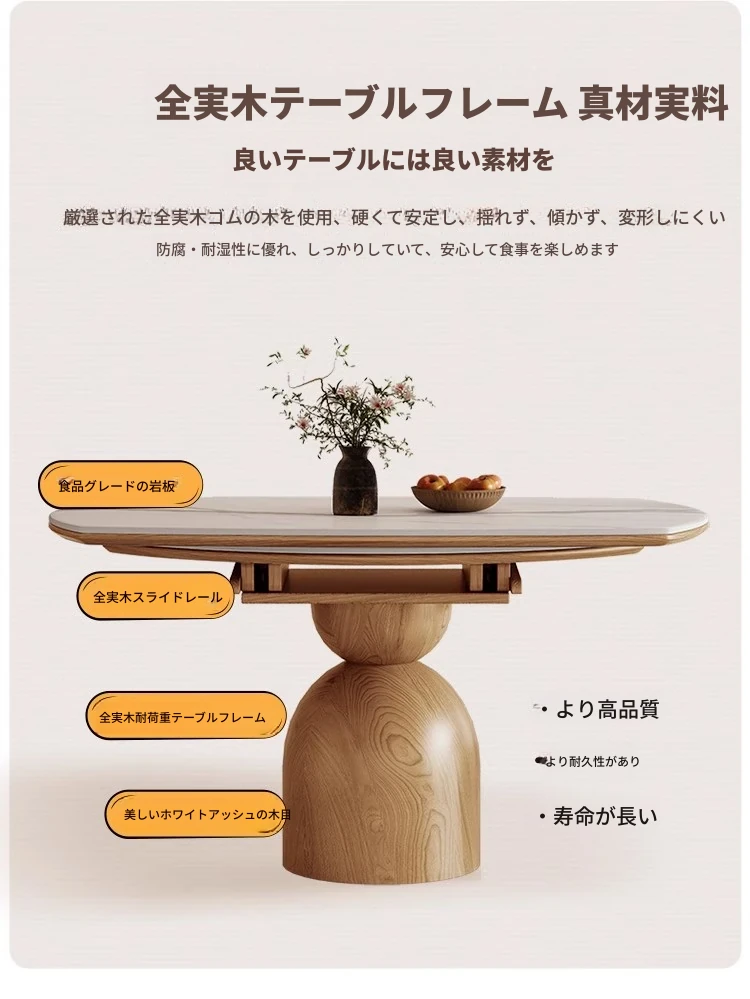 ジャイロ岩板ダイニングテーブル+8鍵椅子