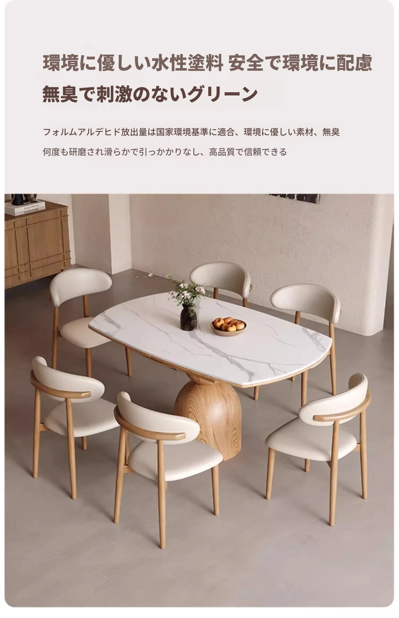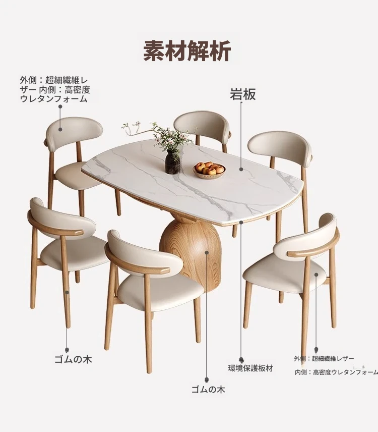 ジャイロ岩板ダイニングテーブル+6鍵椅子