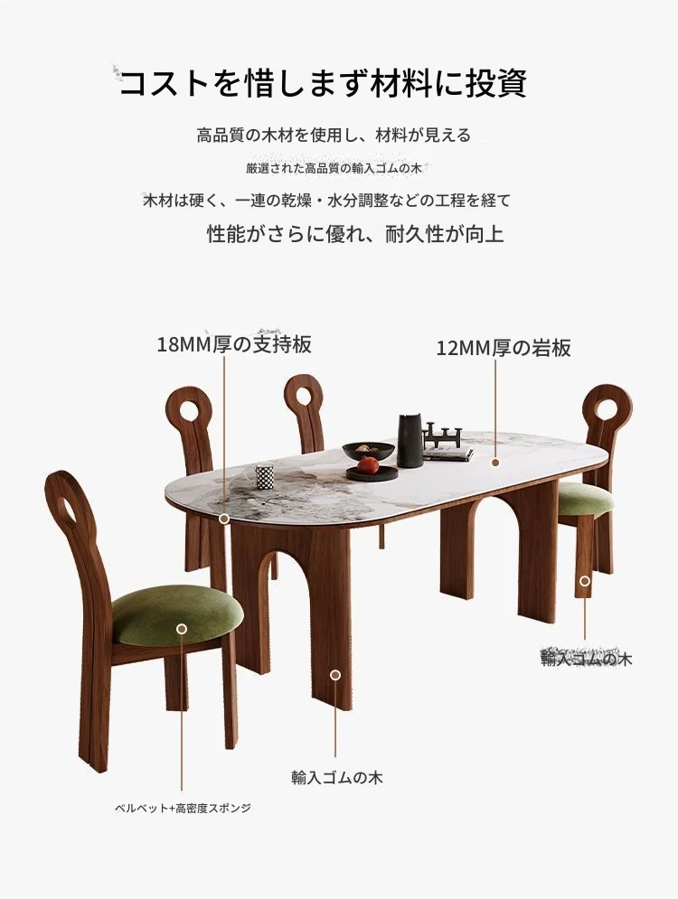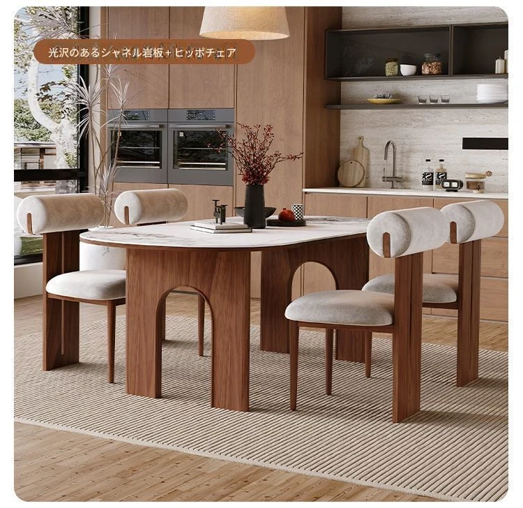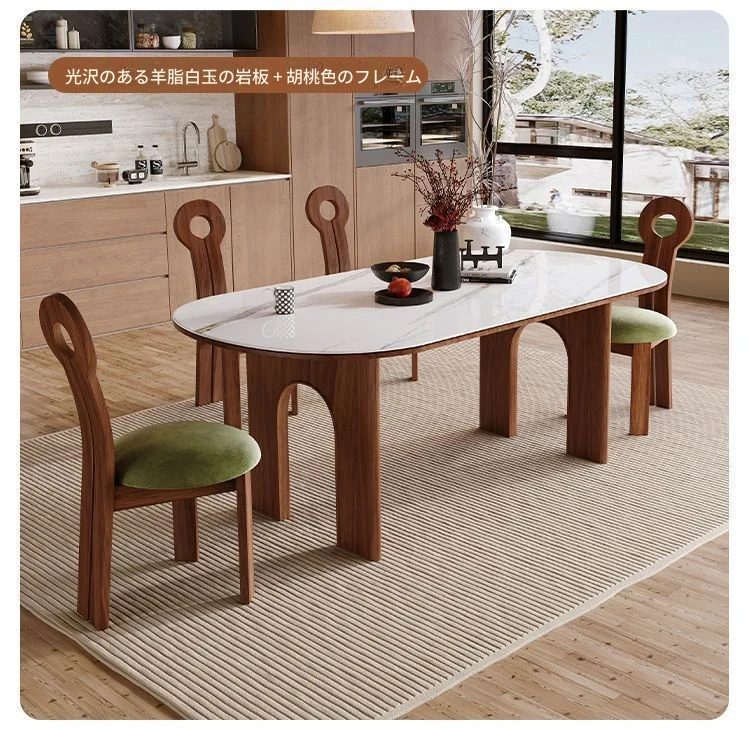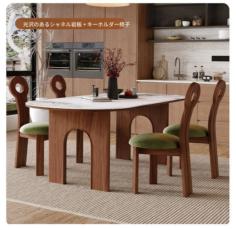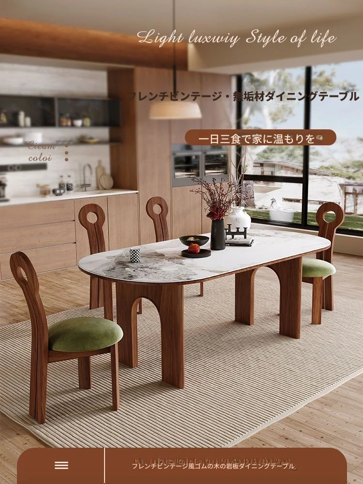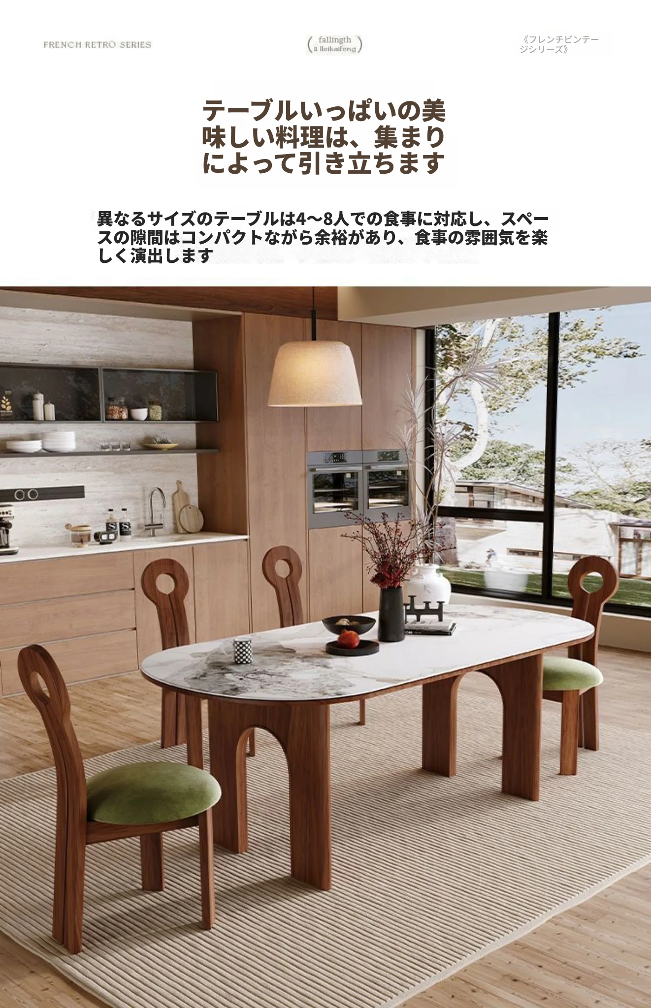 アンティーク風の実木フランス式ダイニングテーブルセット - 小さなスペースにも最適な中古スタイル、リビングにぴったりの実木チェアと高級岩板のテーブルで、食事の時間を特別に演出します。