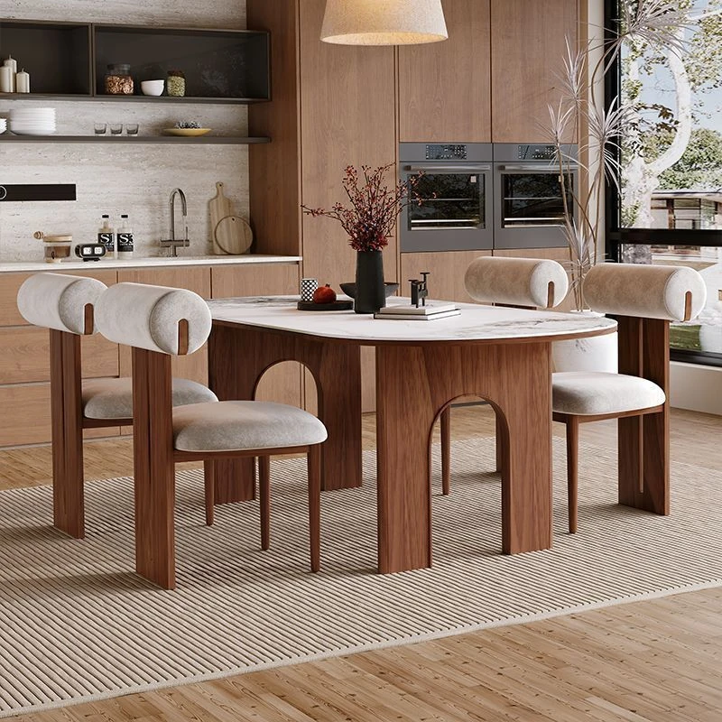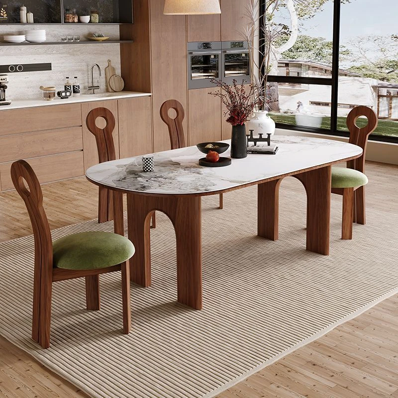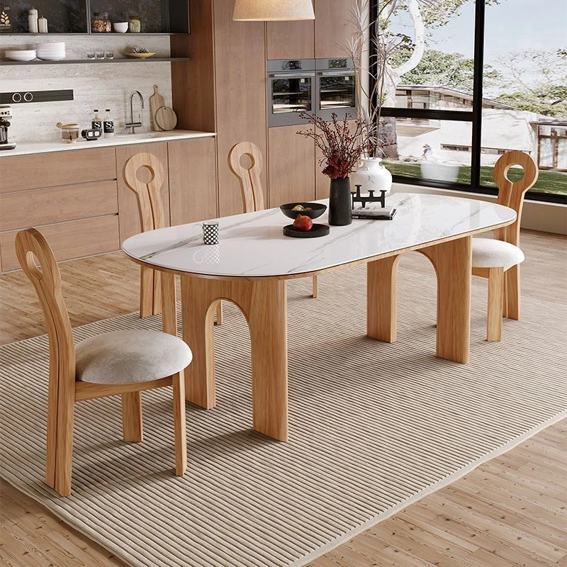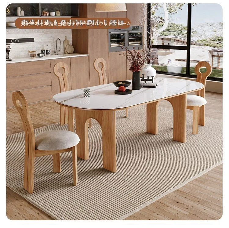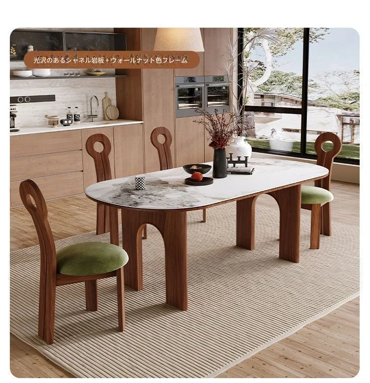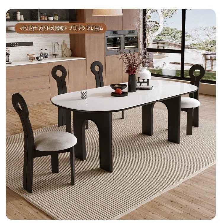 アンティーク風の実木フランス式ダイニングテーブルセット - 小さなスペースにも最適な中古スタイル、リビングにぴったりの実木チェアと高級岩板のテーブルで、食事の時間を特別に演出します。