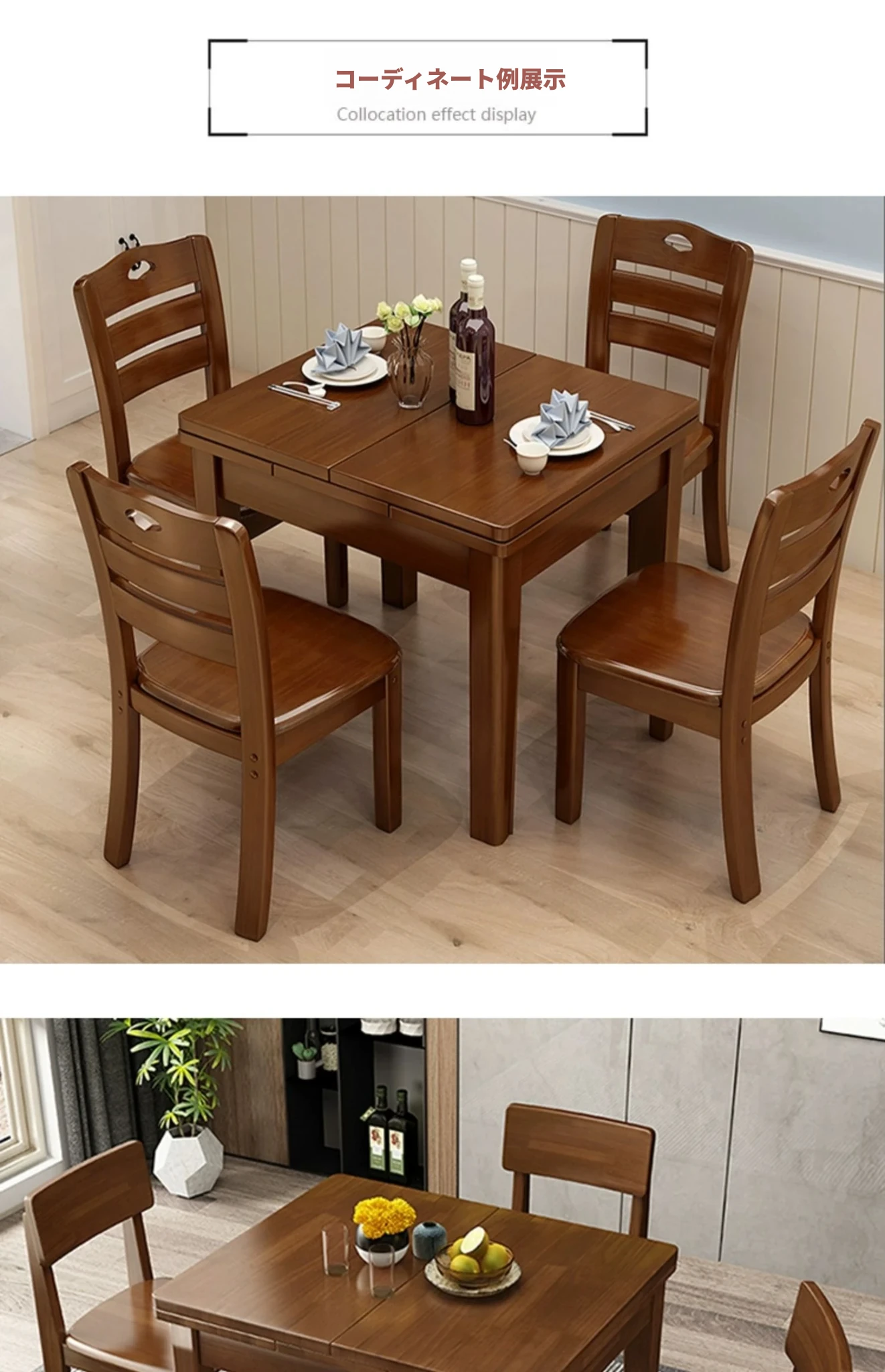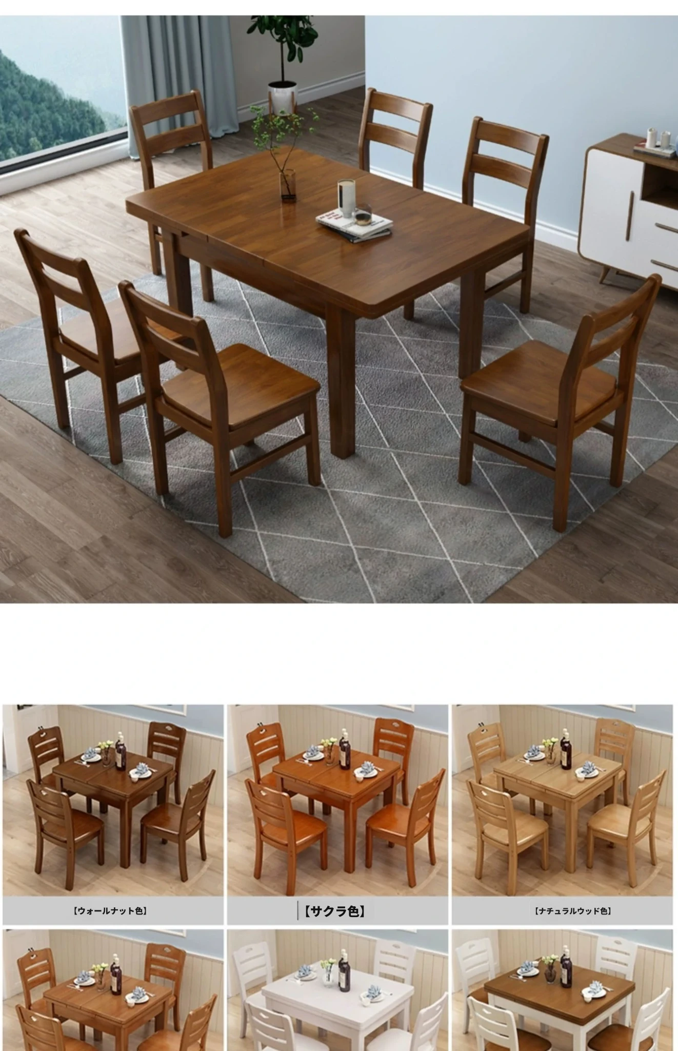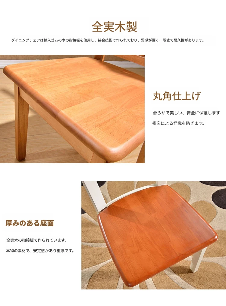 天然木材使用!高品質な無垢材ダイニングテーブル&チェアセット - 組み立て簡単、スタイリッシュな食卓を演出!快適な座り心地の椅子で、家族や友人との素敵な食事時間をお楽しみください。