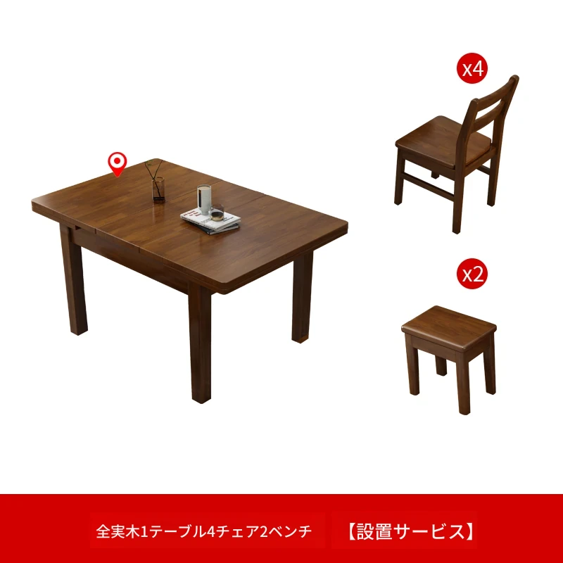 全無垢材のダイニングテーブル4脚2スツール付き【設置サービス】