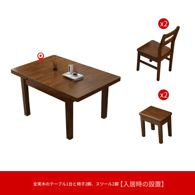 全無垢材のダイニングテーブル2脚2スツール付き【設置サービス】