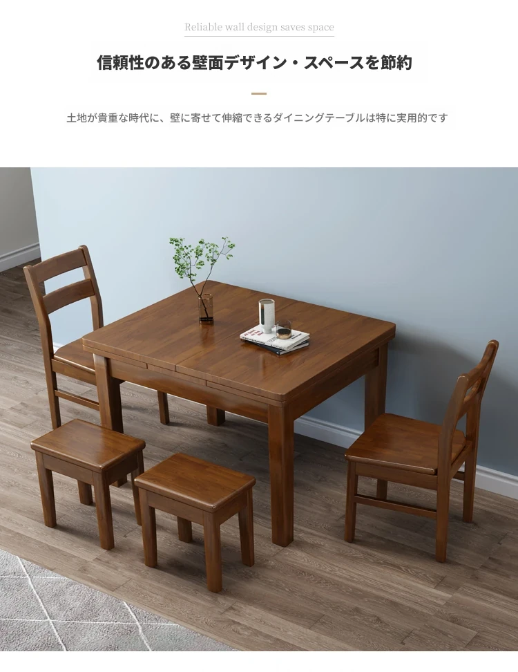 全無垢材のダイニングテーブル4小スツール付き【設置サービス】
