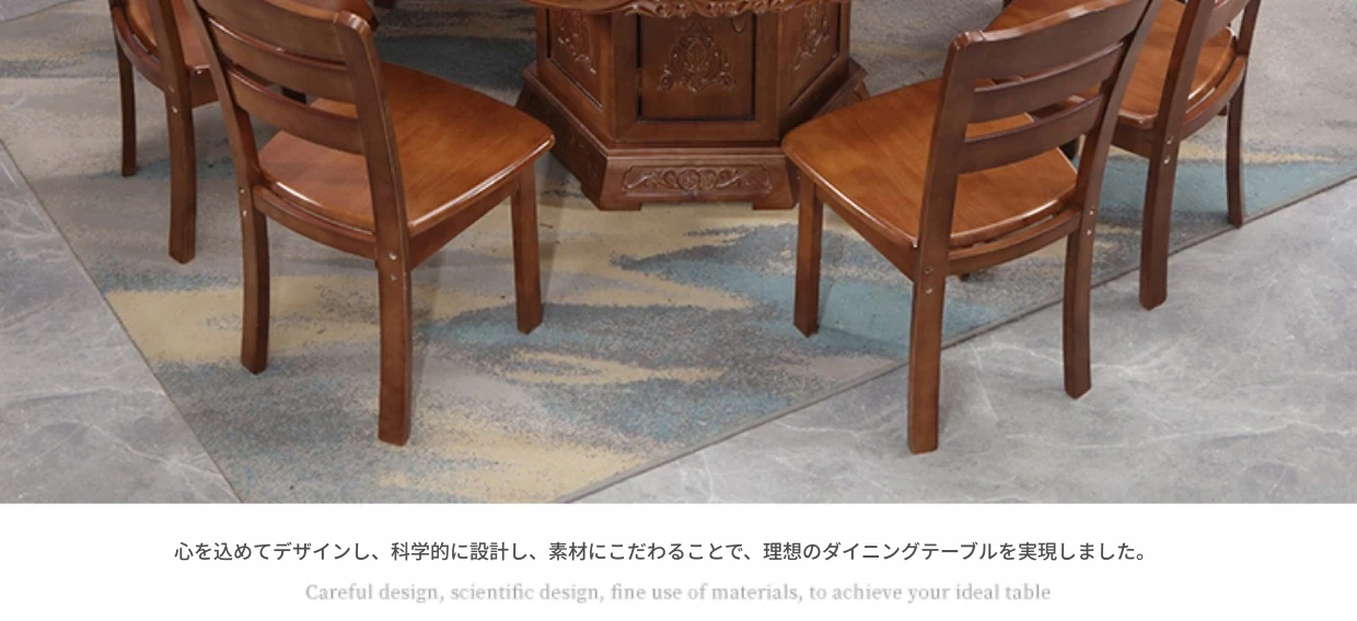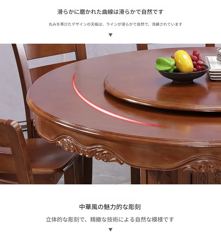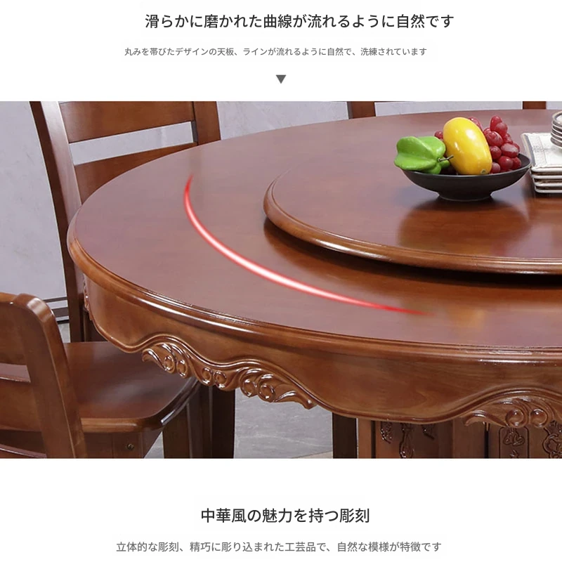 1.2メートルのダイニングテーブル+6脚の椅子と回転台付き
