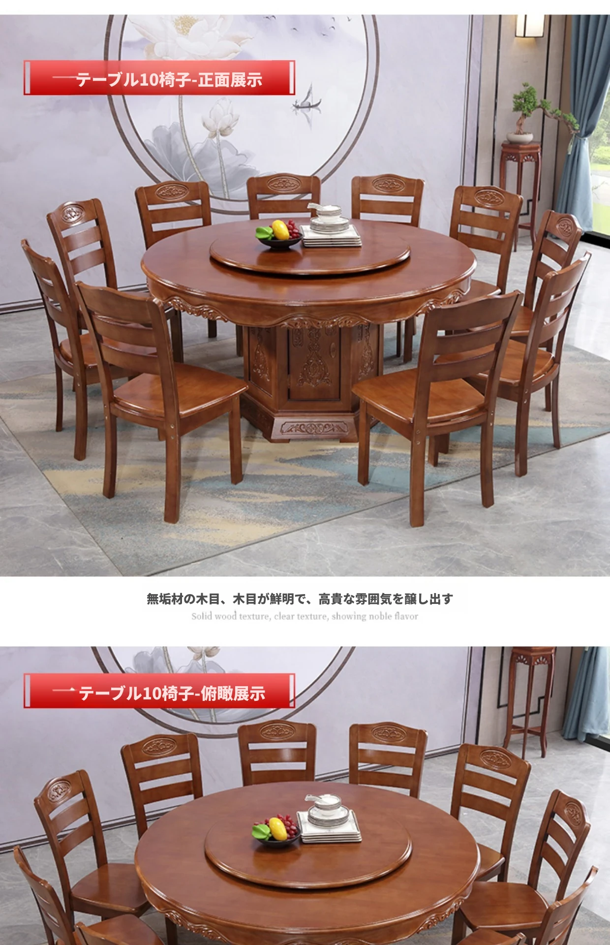 1.8メートルのダイニングテーブル+10脚の椅子と回転台付き