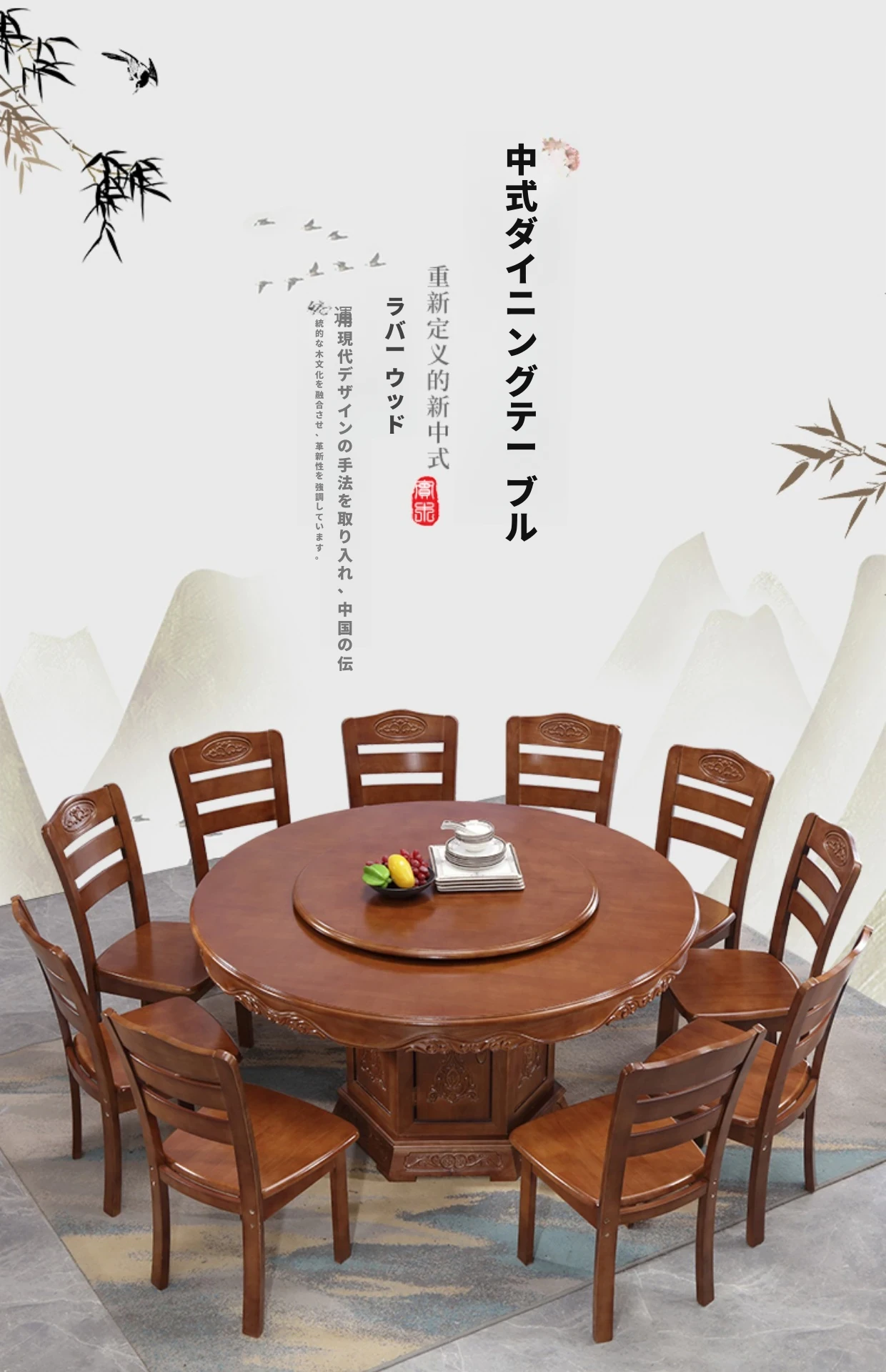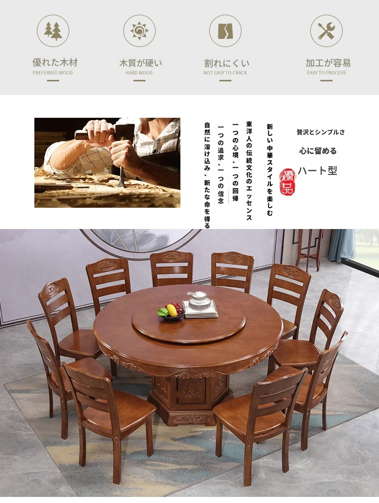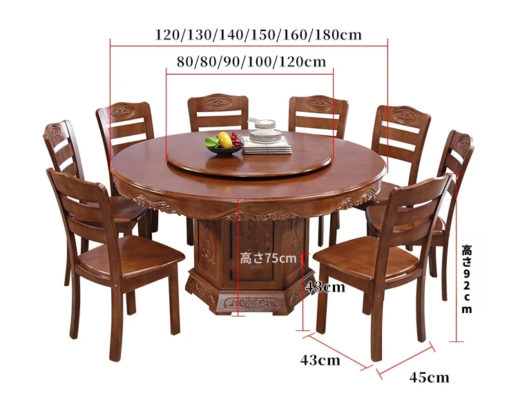 1.8メートルのダイニングテーブル+12脚の椅子と回転台付き