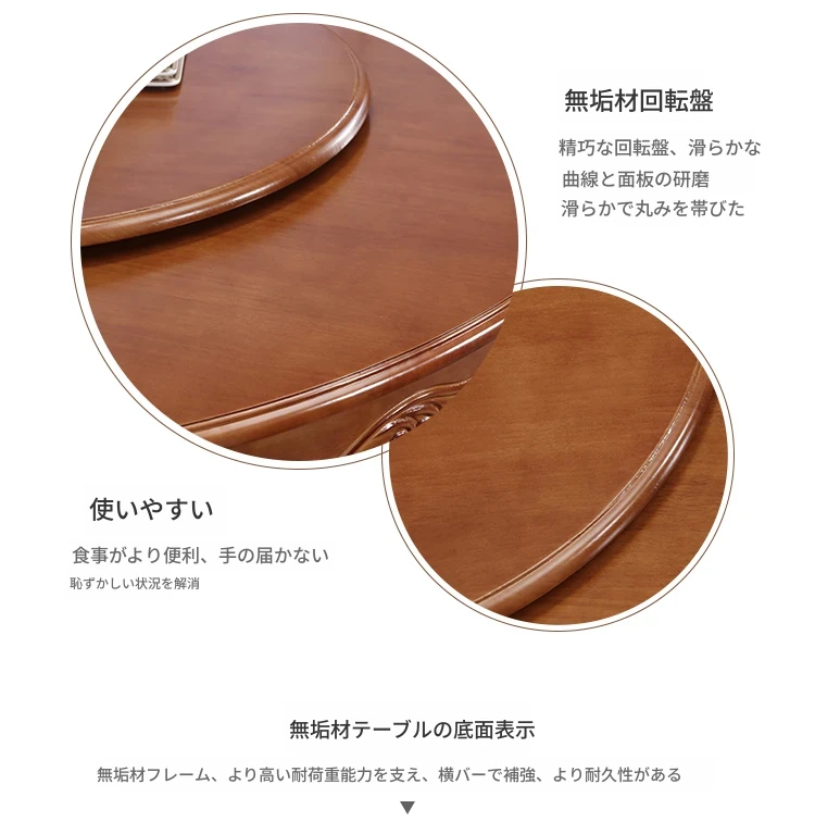 1.3メートルのダイニングテーブル+6脚の椅子と回転台付き