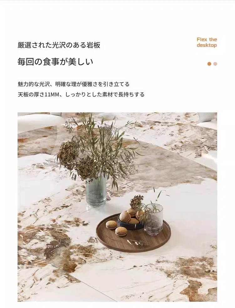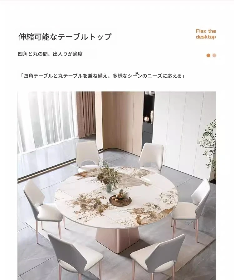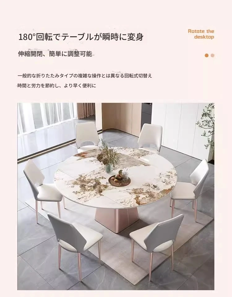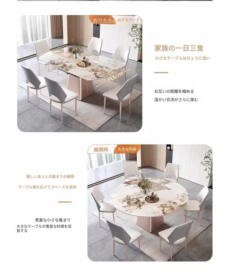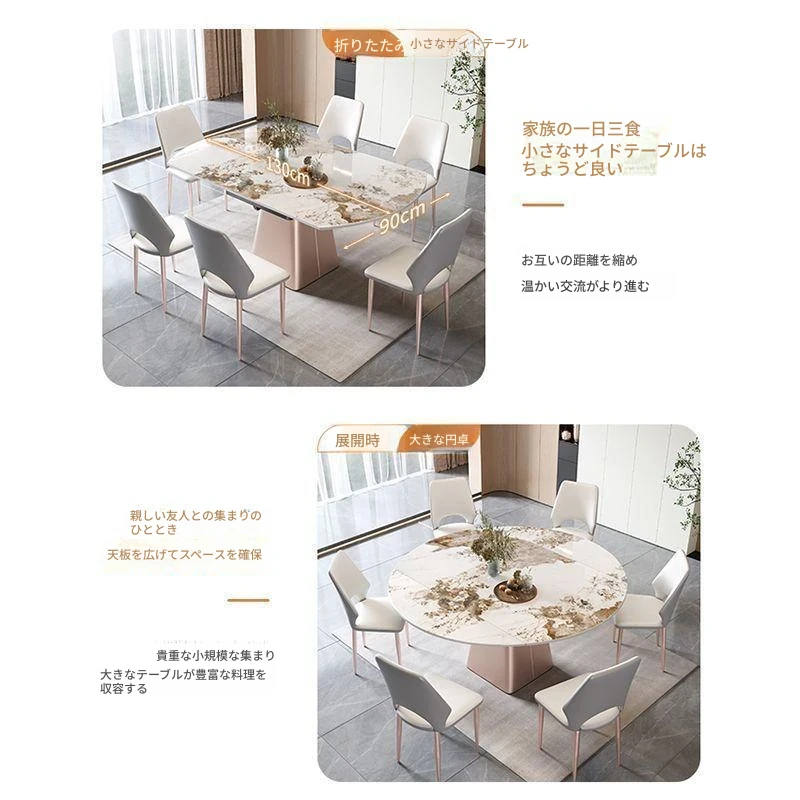 軽奢感溢れるモダンデザイン!回転式&折りたたみ可能な小型岩板ダイニングテーブルセット - コンパクトなスペースにも最適な四角形・円形両用の食卓。家庭での食事をスタイリッシュに演出!