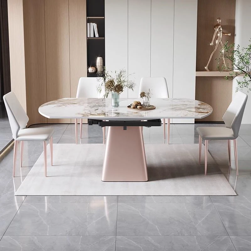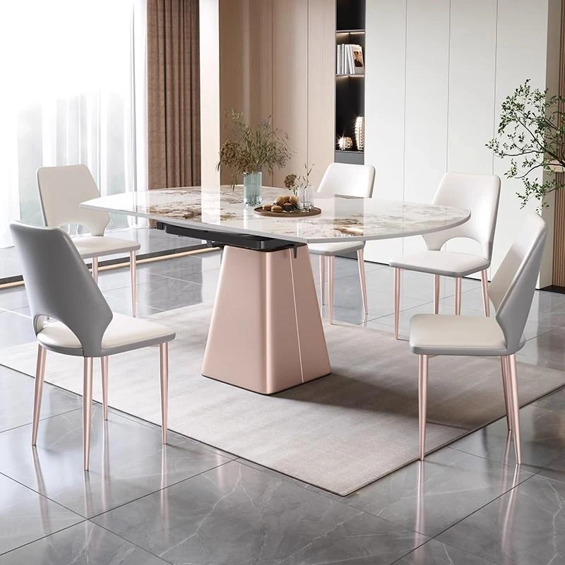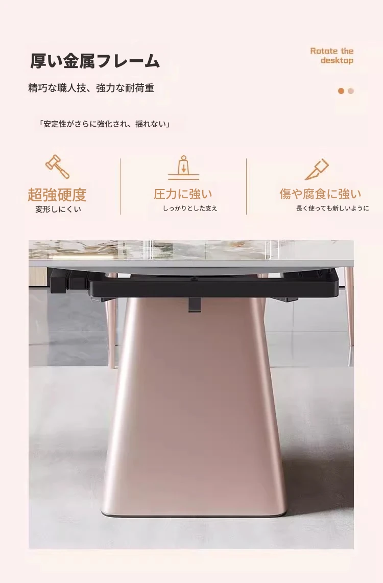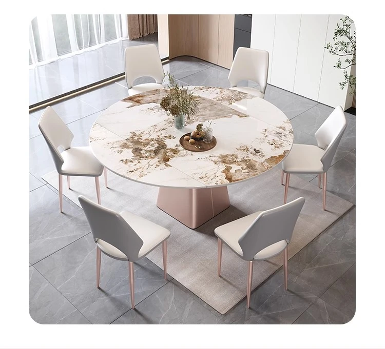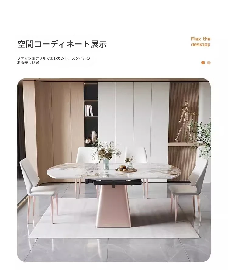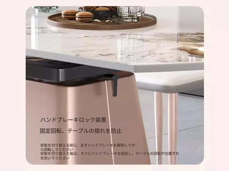 軽奢感溢れるモダンデザイン!回転式&折りたたみ可能な小型岩板ダイニングテーブルセット - コンパクトなスペースにも最適な四角形・円形両用の食卓。家庭での食事をスタイリッシュに演出!