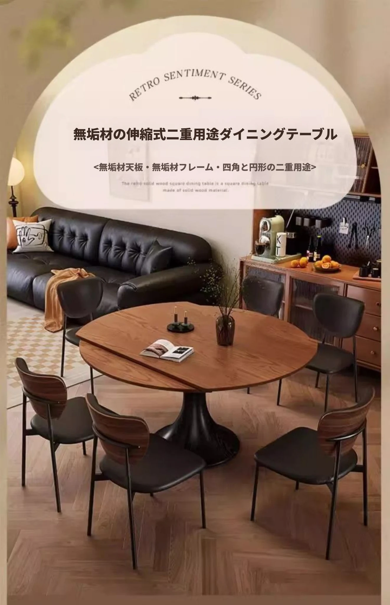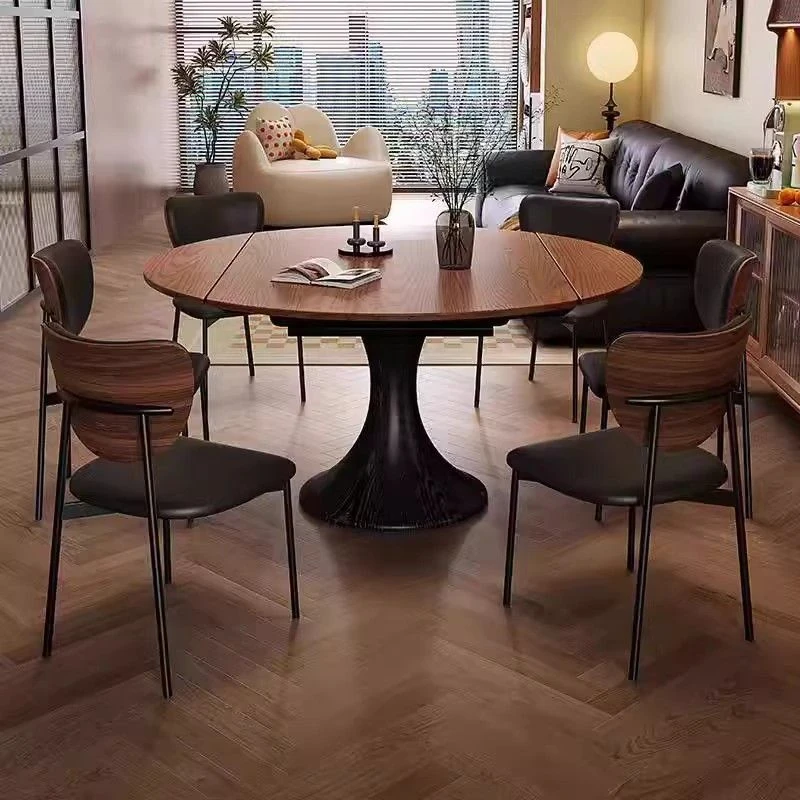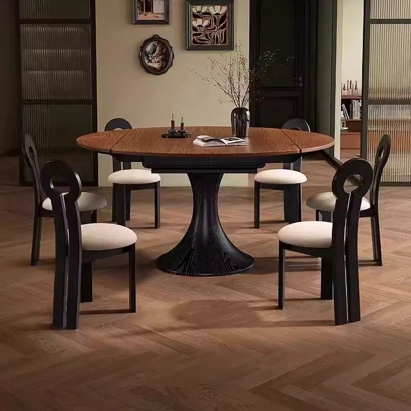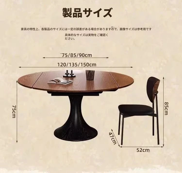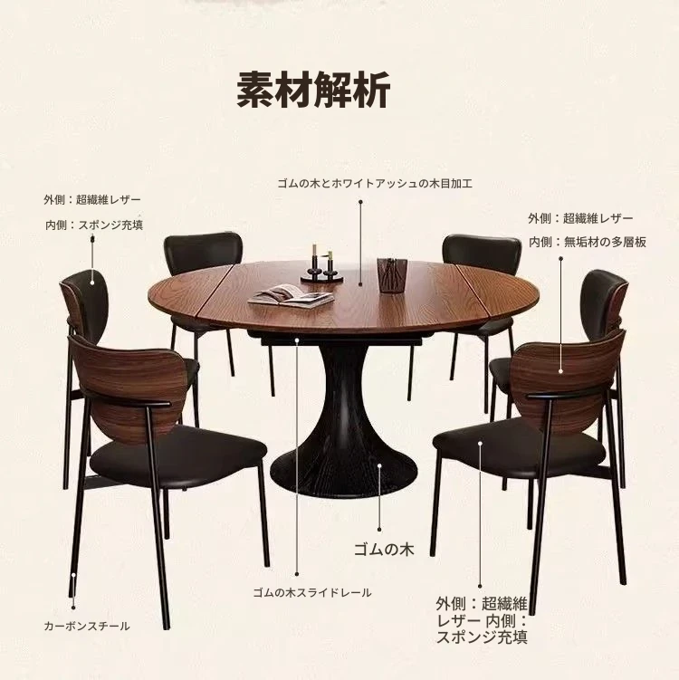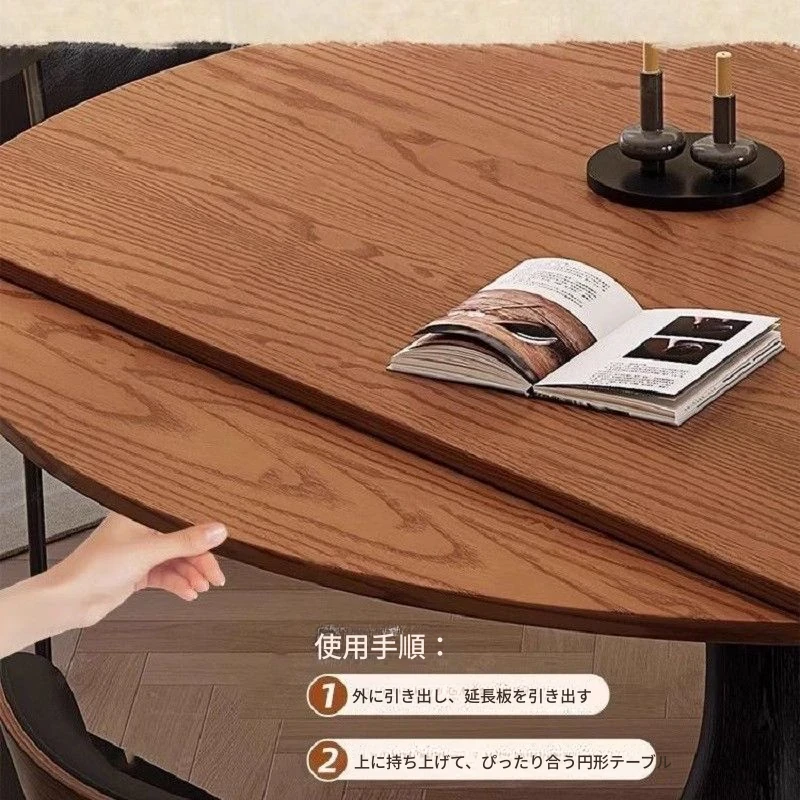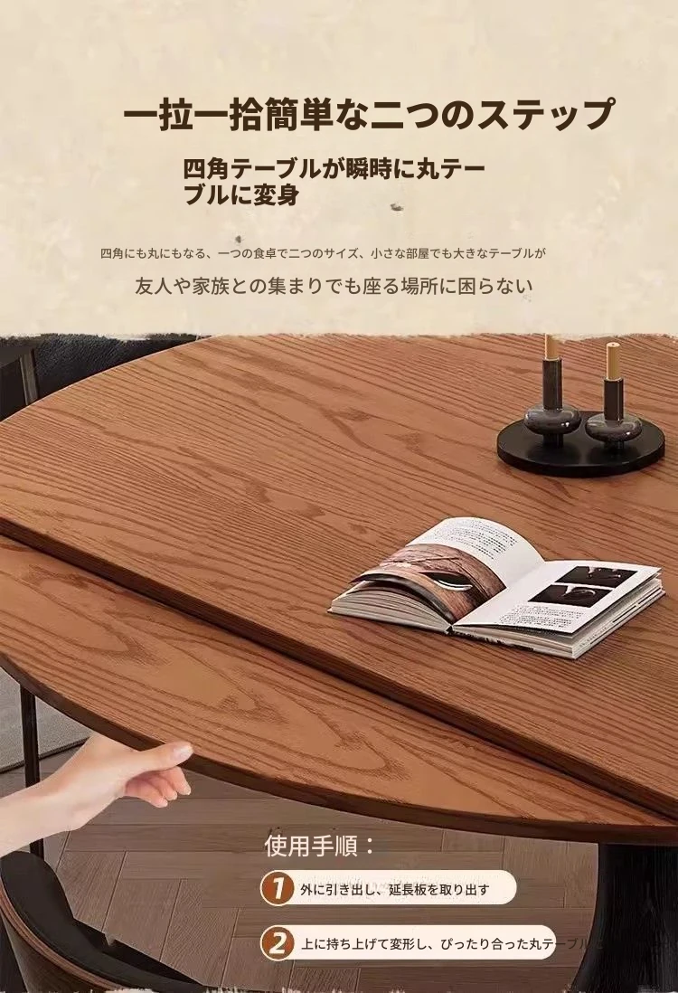 ホワイトアッシュ材の多機能折りたたみダイニングテーブルセット - フランス風の円形テーブルで、中古スタイルの魅力をプラス!省スペースで使いやすく、家族や友人との楽しい食事に最適。