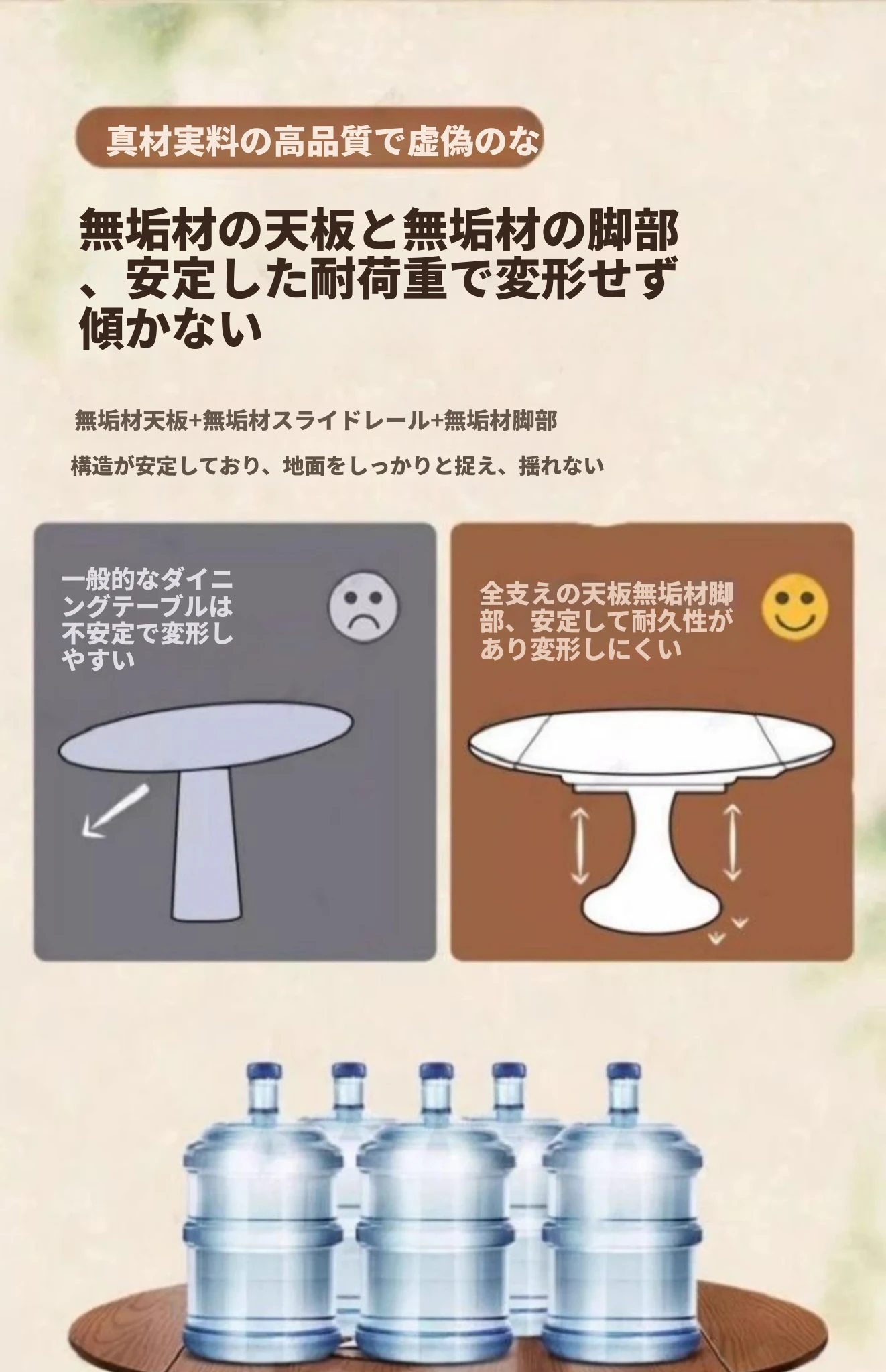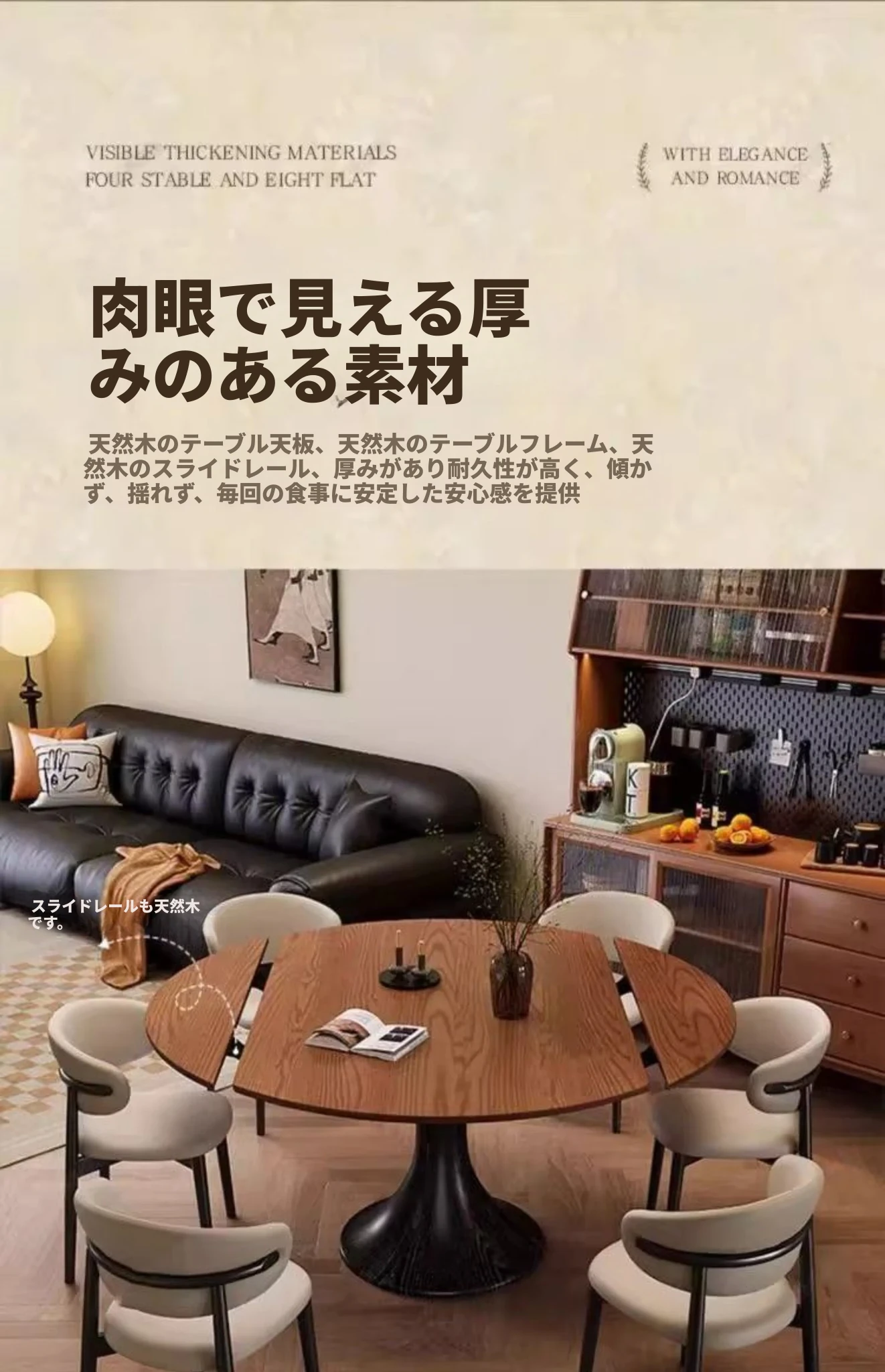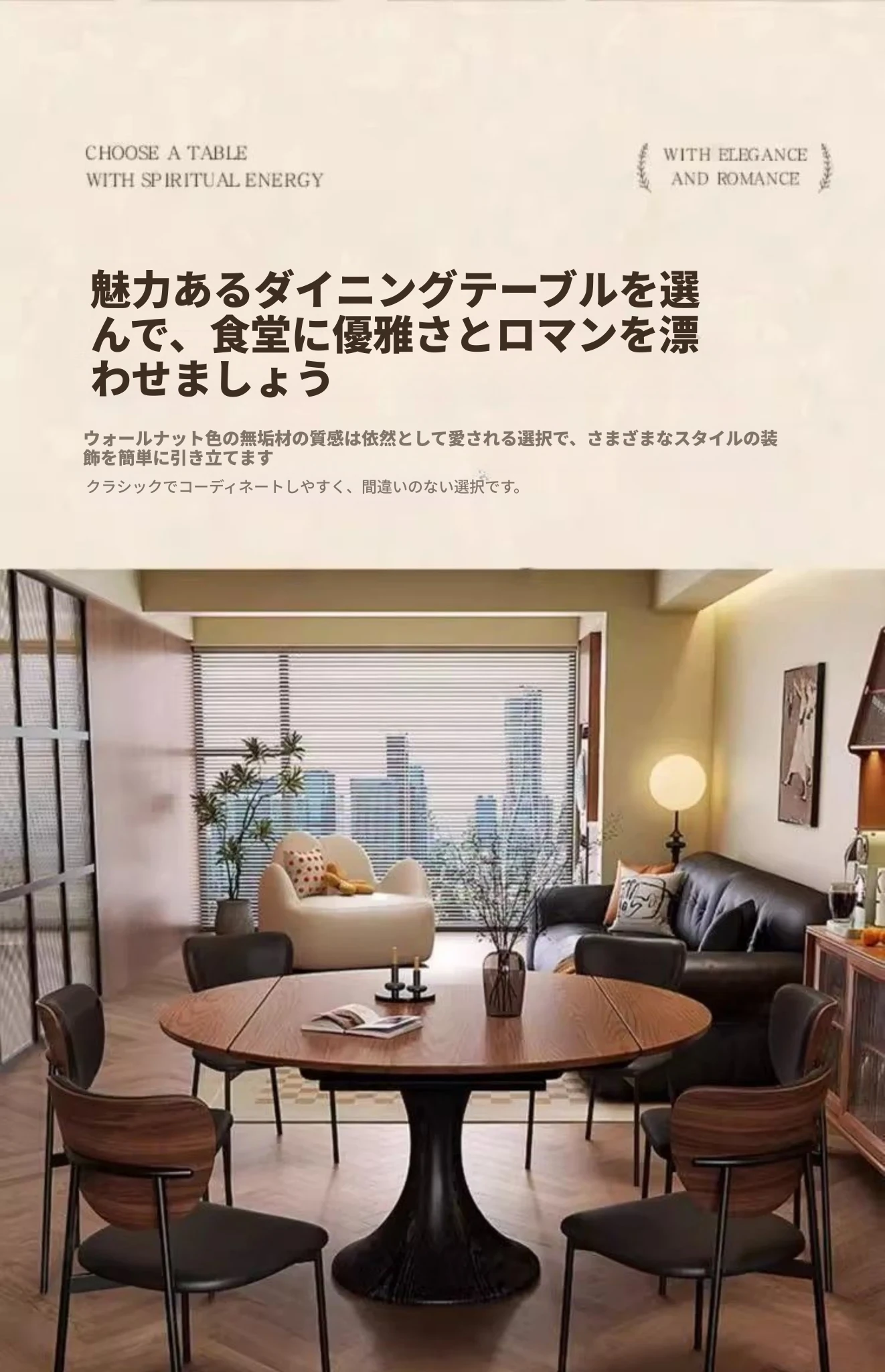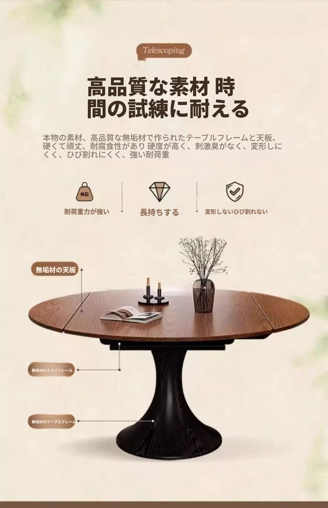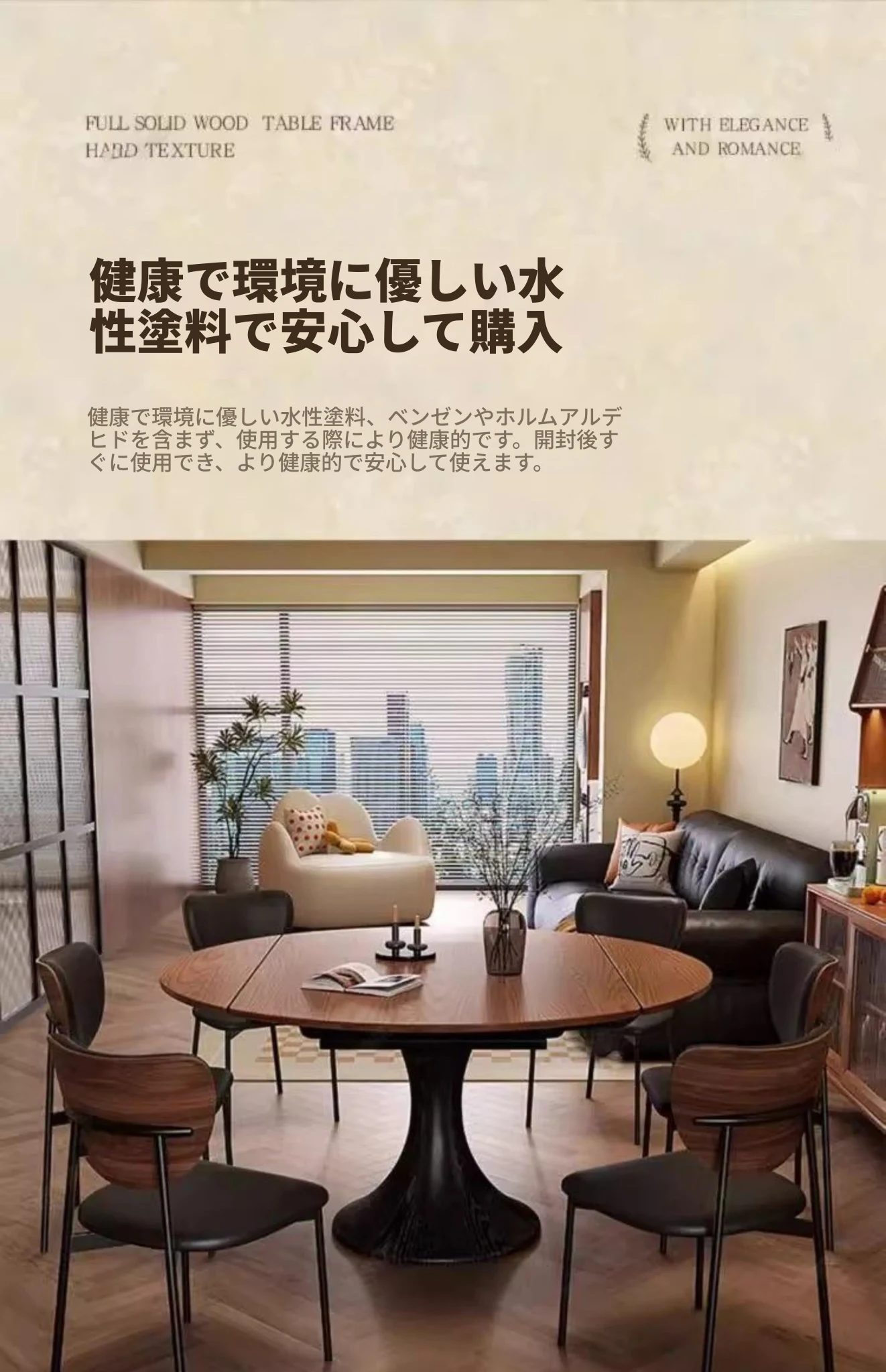 ホワイトアッシュ材の多機能折りたたみダイニングテーブルセット - フランス風の円形テーブルで、中古スタイルの魅力をプラス!省スペースで使いやすく、家族や友人との楽しい食事に最適。