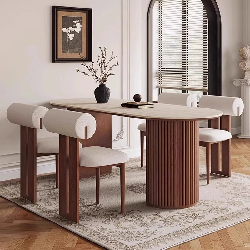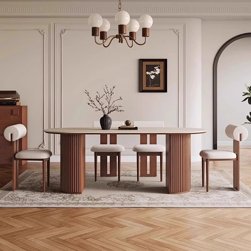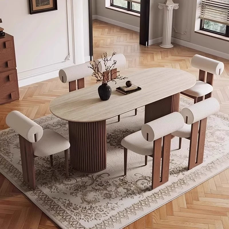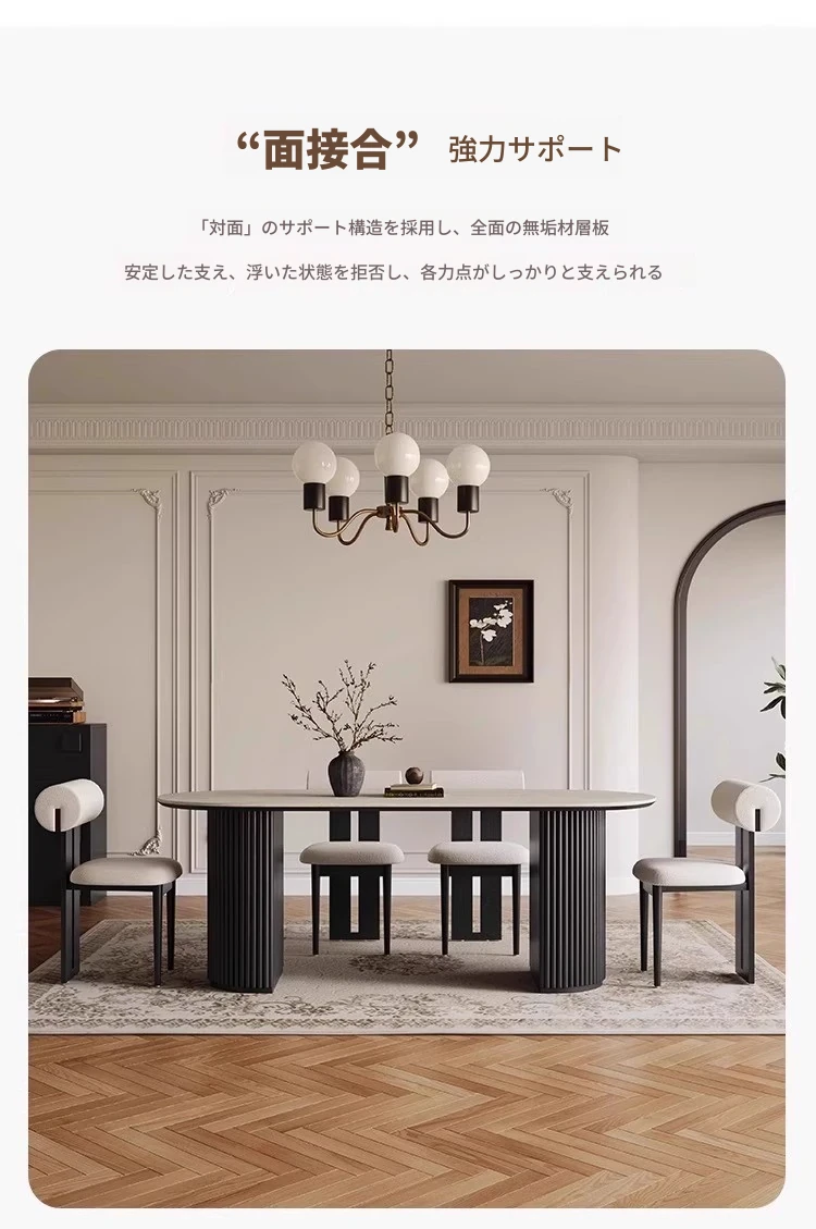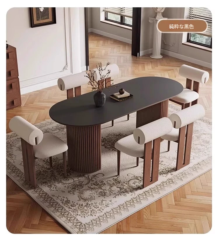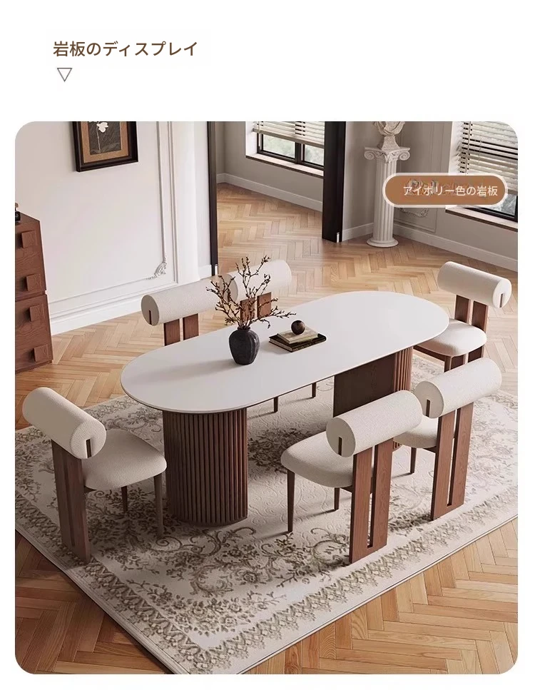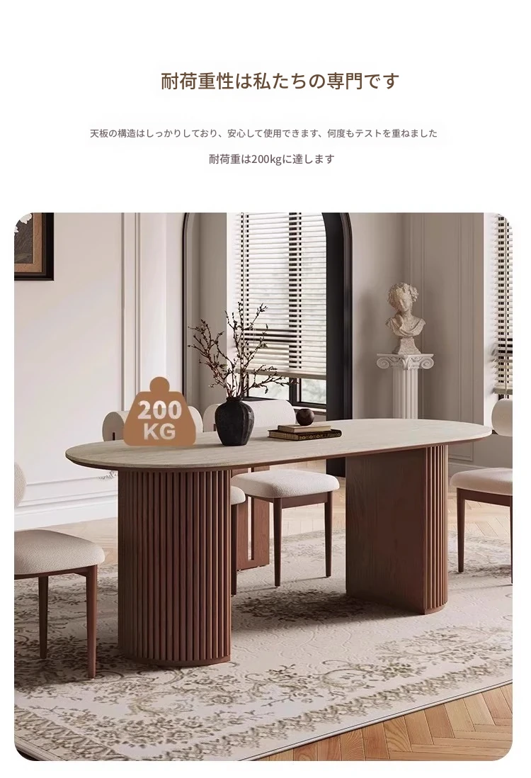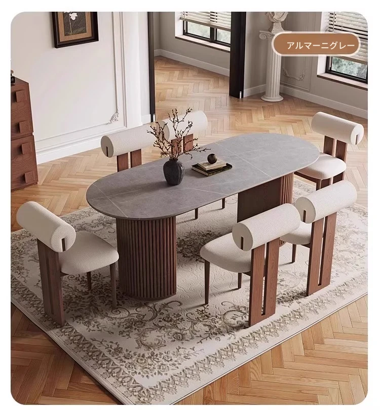 高品質の天然石風オーバルダイニングテーブル - 中古風の美しさを楽しむ!小さなスペースにもぴったりな家用テーブル。ヴィンテージ感あふれるデザインで、おしゃれな食卓を演出します。