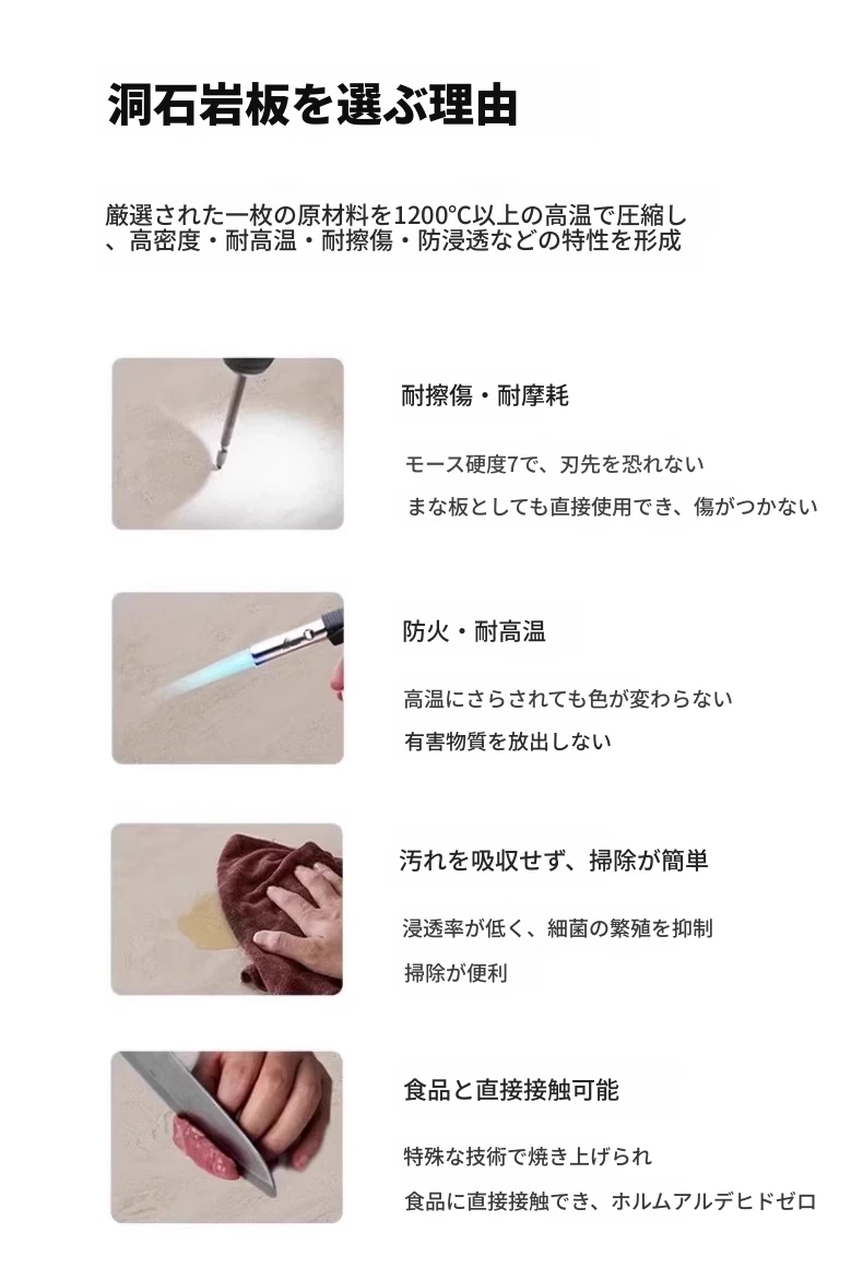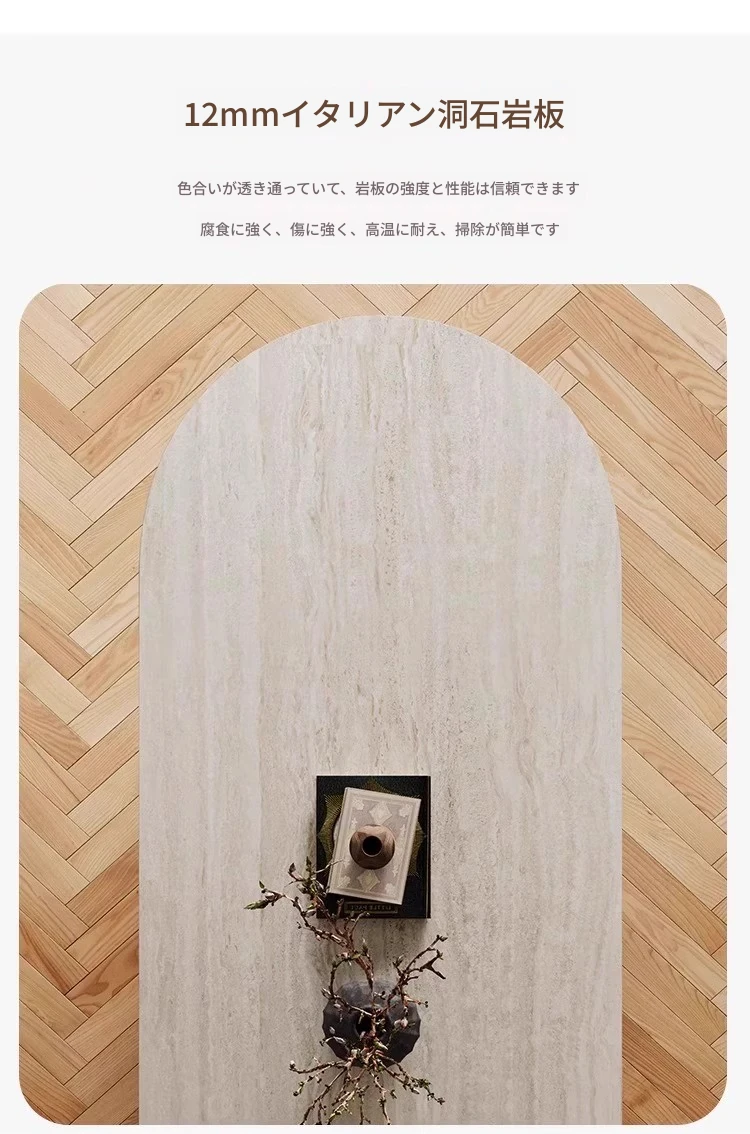 洞石の岩板テーブル