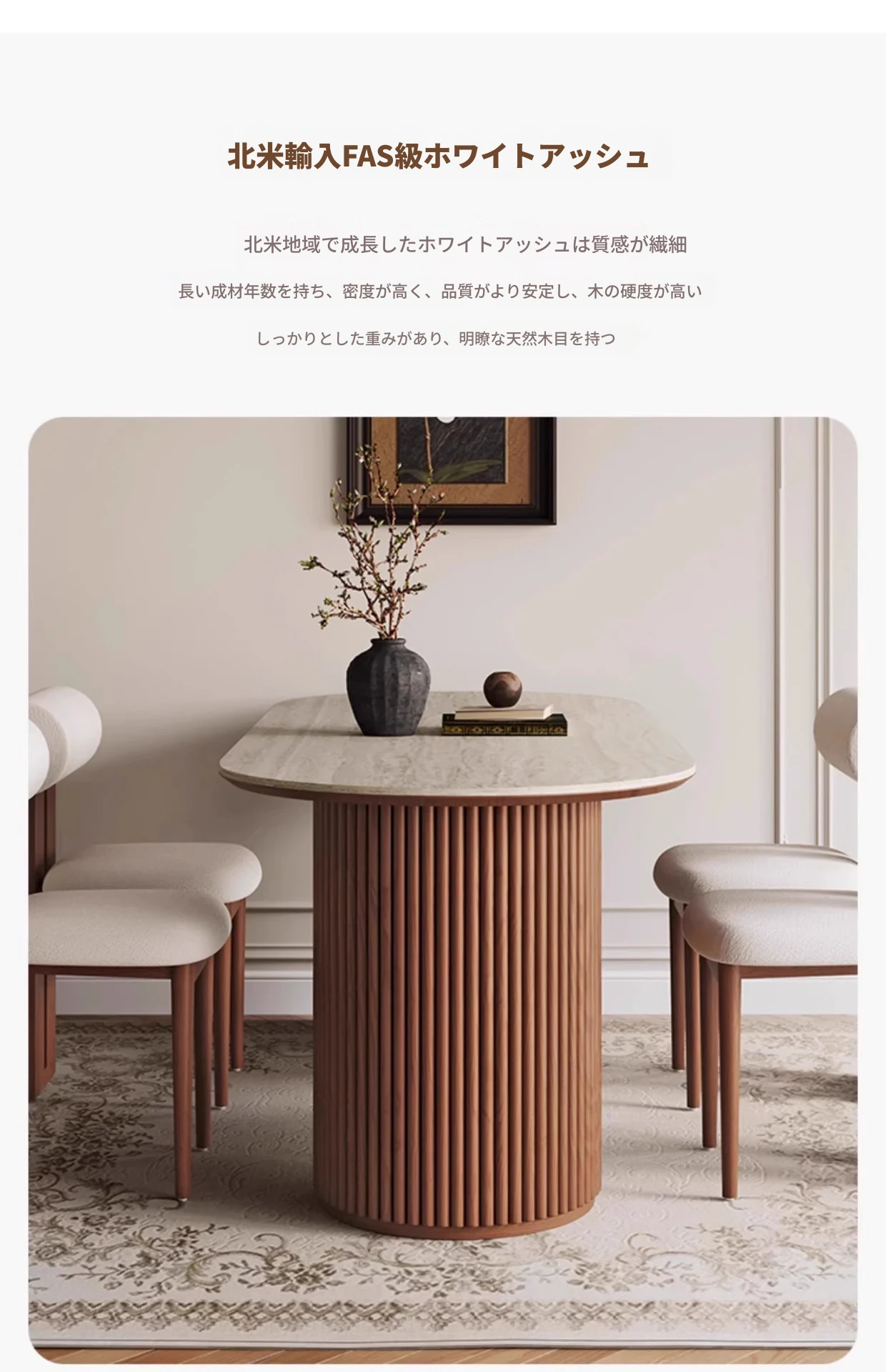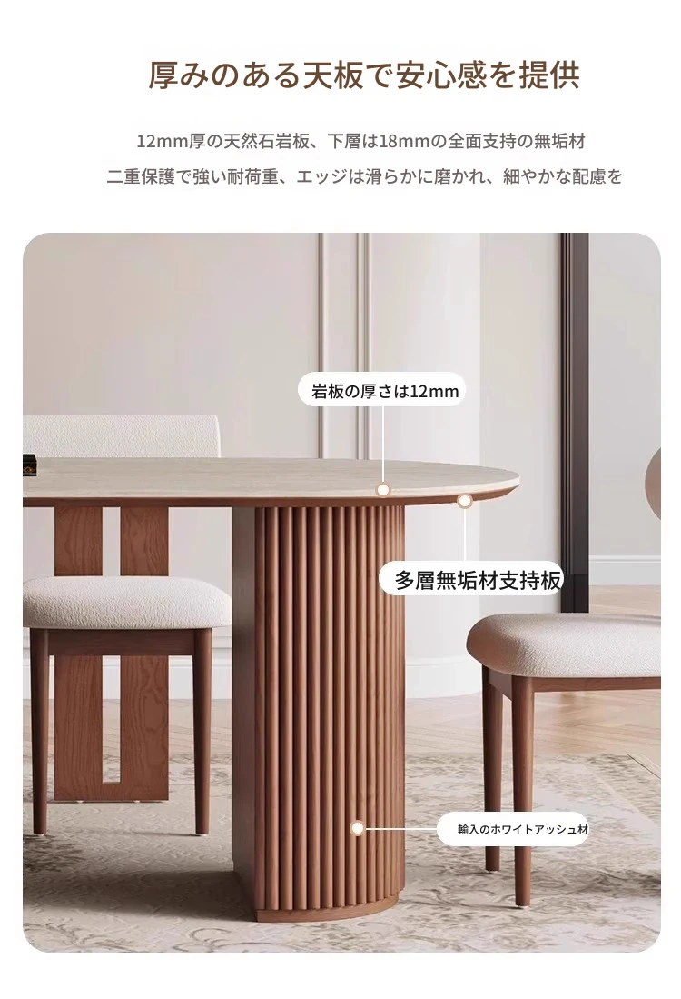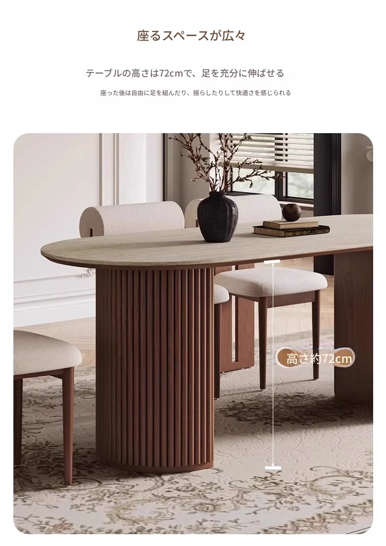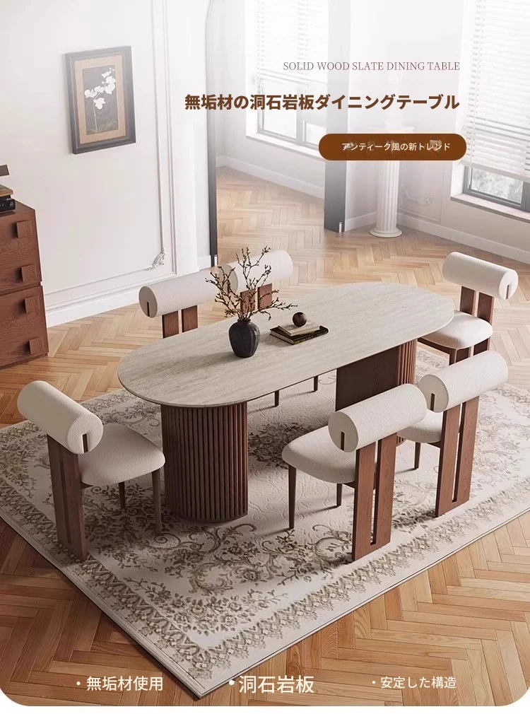 洞石の岩板テーブル+カバ椅子*6