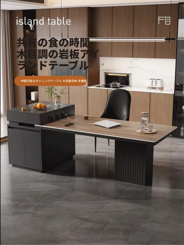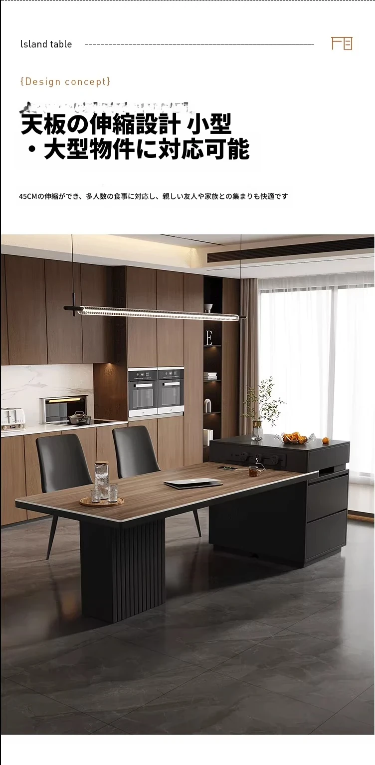 CT41ストレージアイランドテーブル【フラットタイプ+トラック電源タップ+電磁調理器付き】