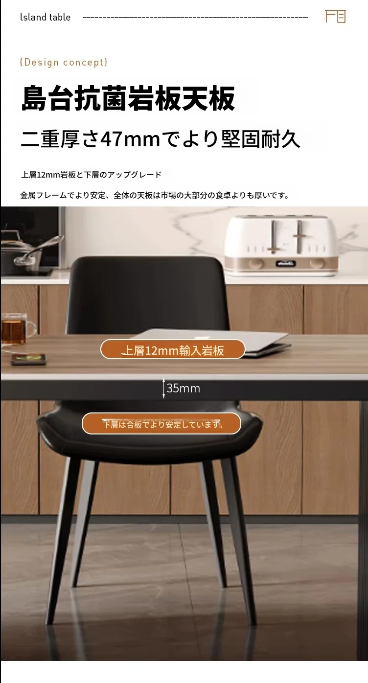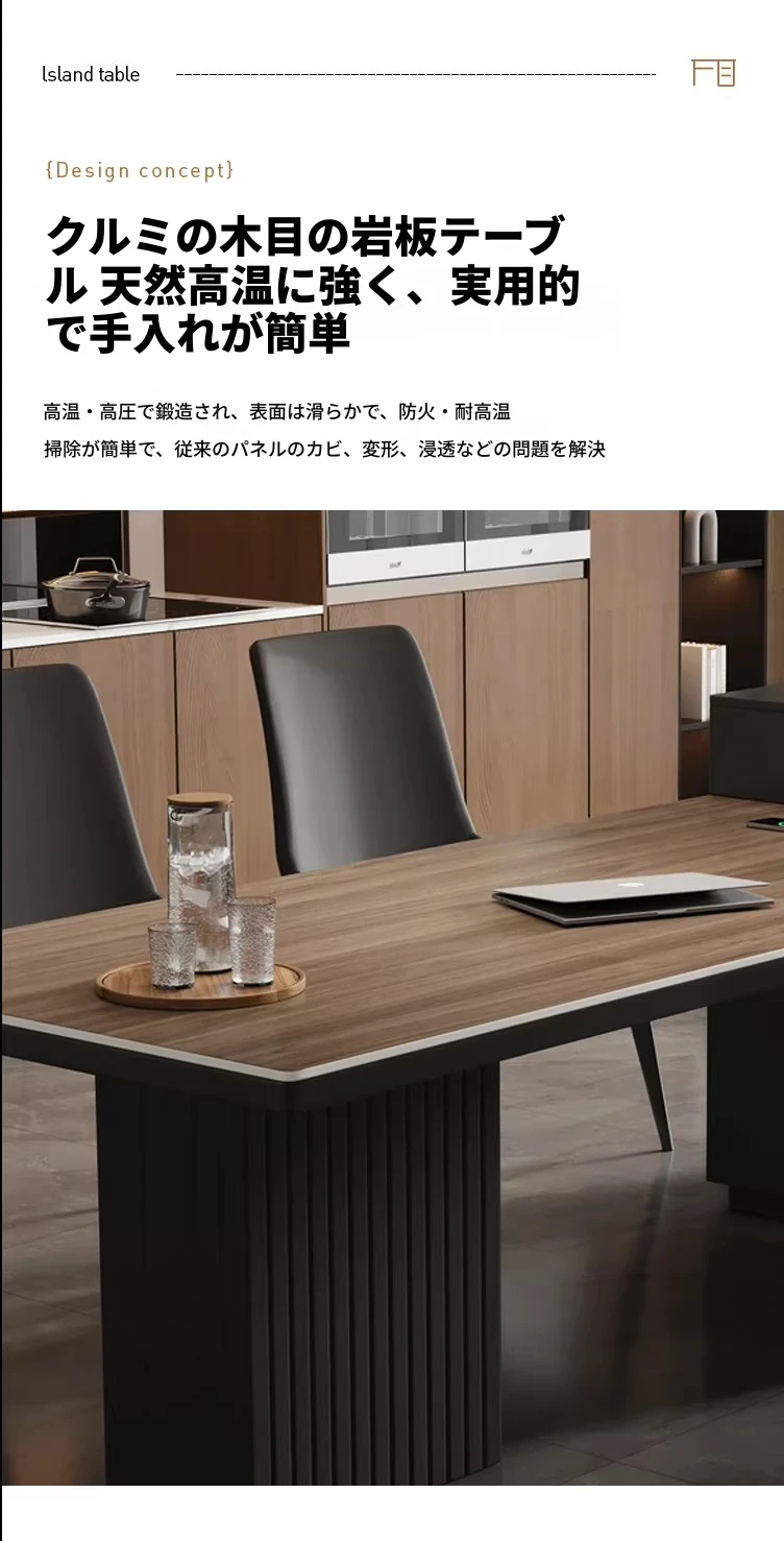 CT41ストレージアイランドテーブル【フラットタイプ+トラック電源タップ+電磁調理器付き】+ブレードチェア*6