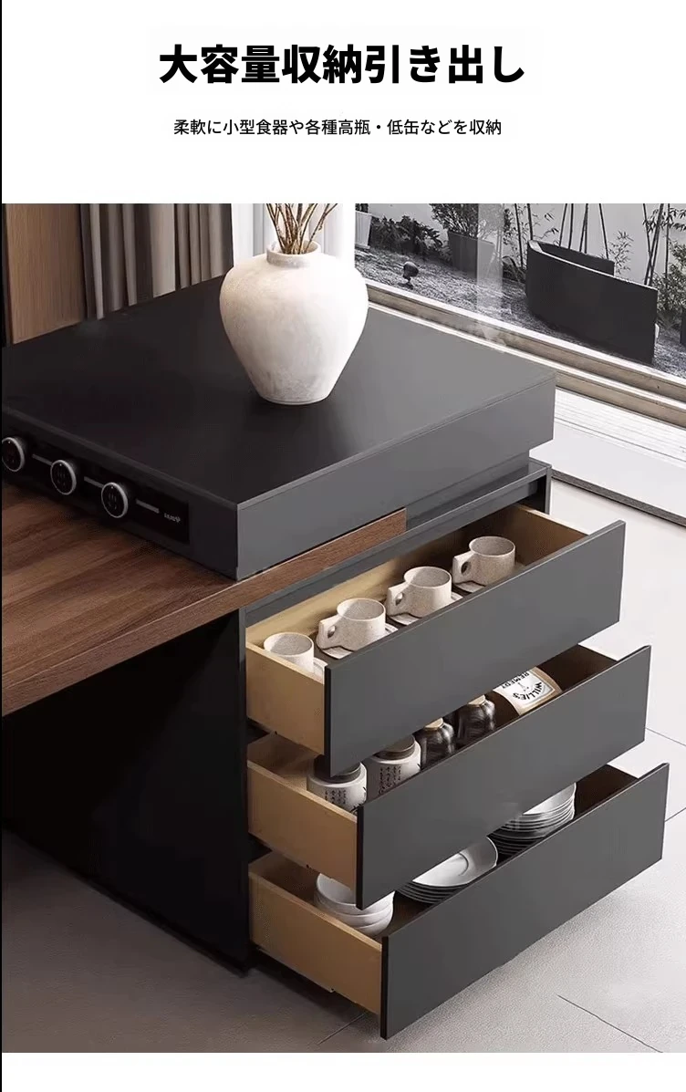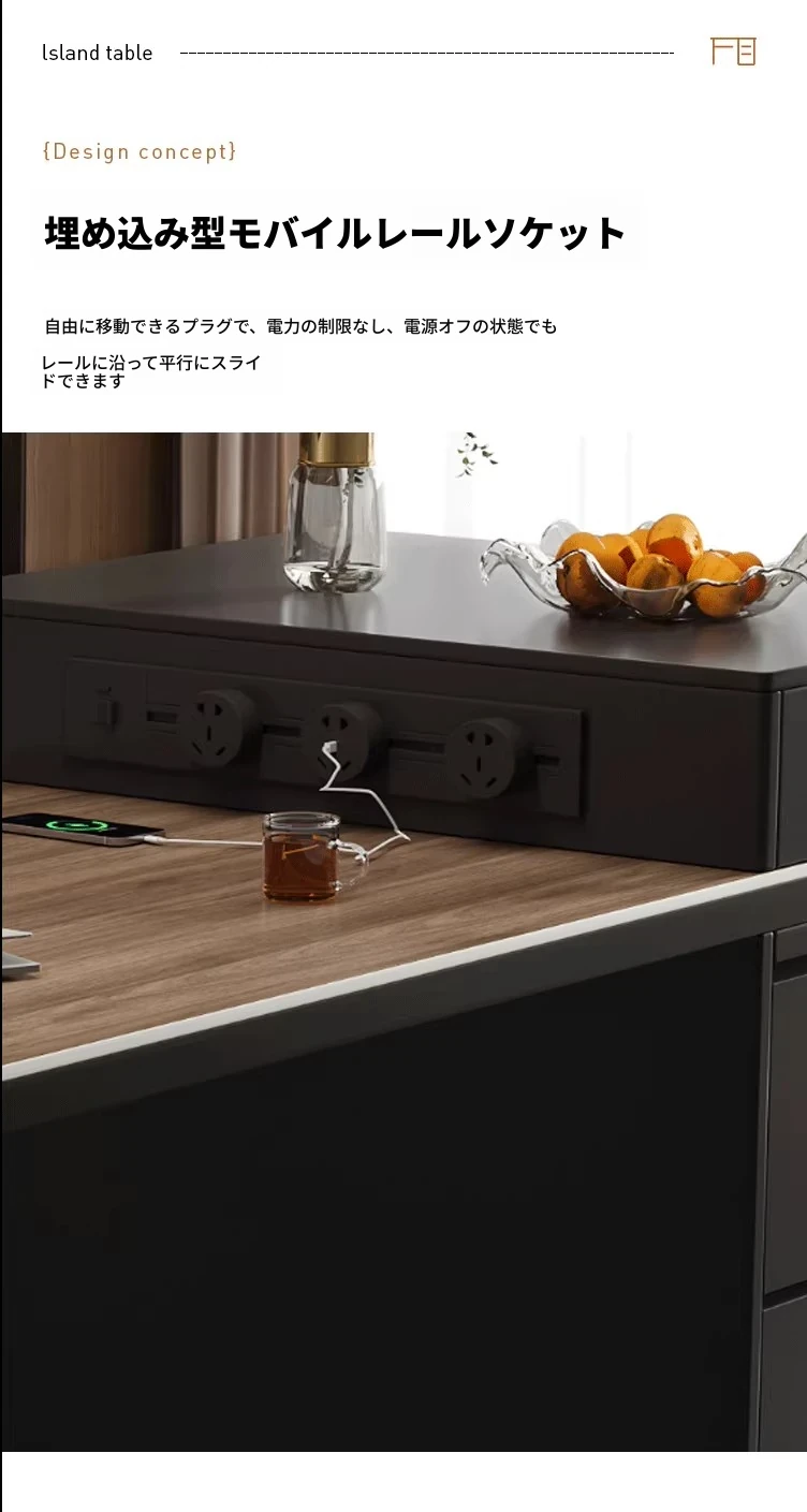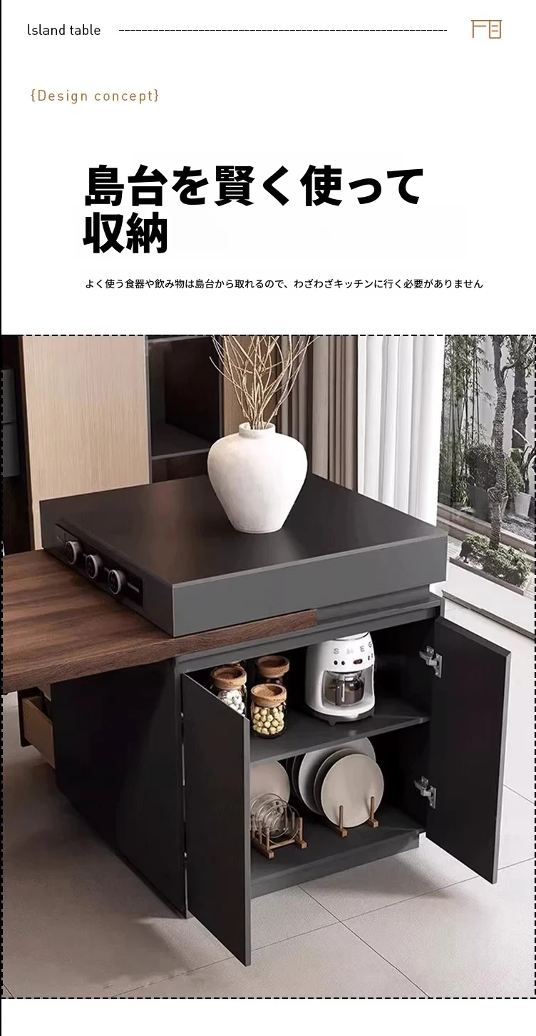 CT41ストレージアイランドテーブル【ティーセットタイプ+トラック電源タップ+電磁調理器付き】