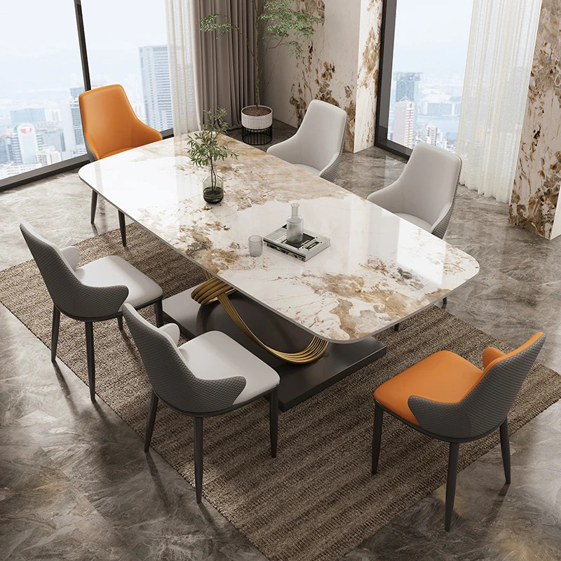 イタリアンミニマルデザインの長方形ストーンテーブル&チェアセット|北欧スタイルのラグジュアリーアート|広々としたお部屋にぴったりの豪華なダイニングテーブル